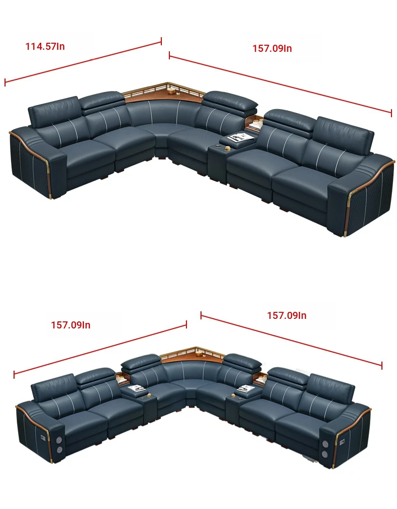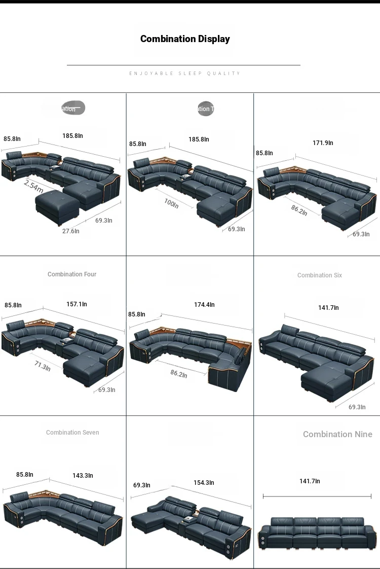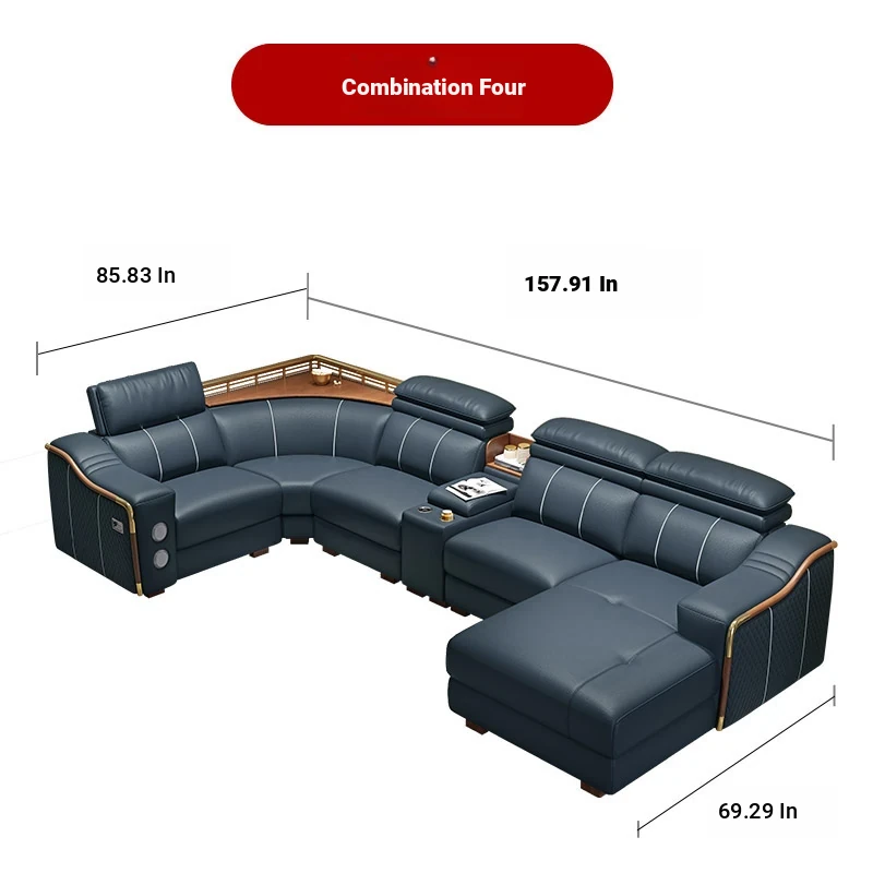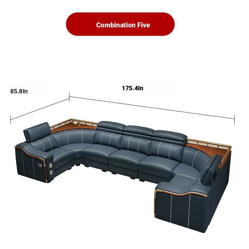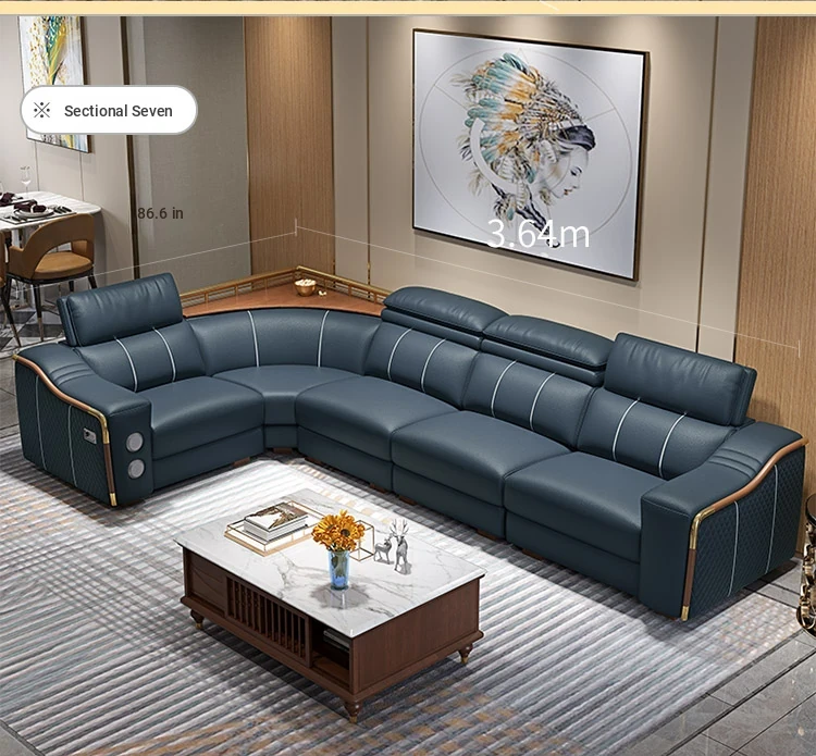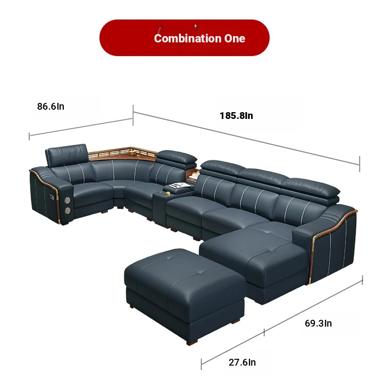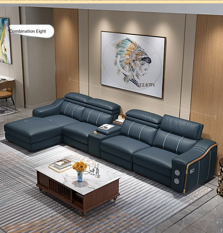 Luxurious Leather Sofa Set for Spacious Living Rooms - Modern Minimalist Design, Made with Top-Grade Cowhide and Down-Filled Cushions, Perfect for Upscale Villas.