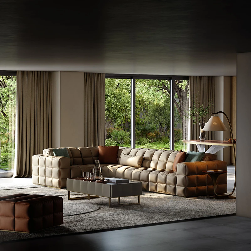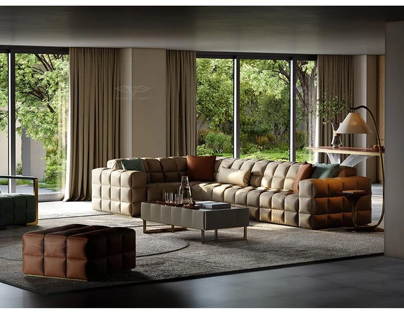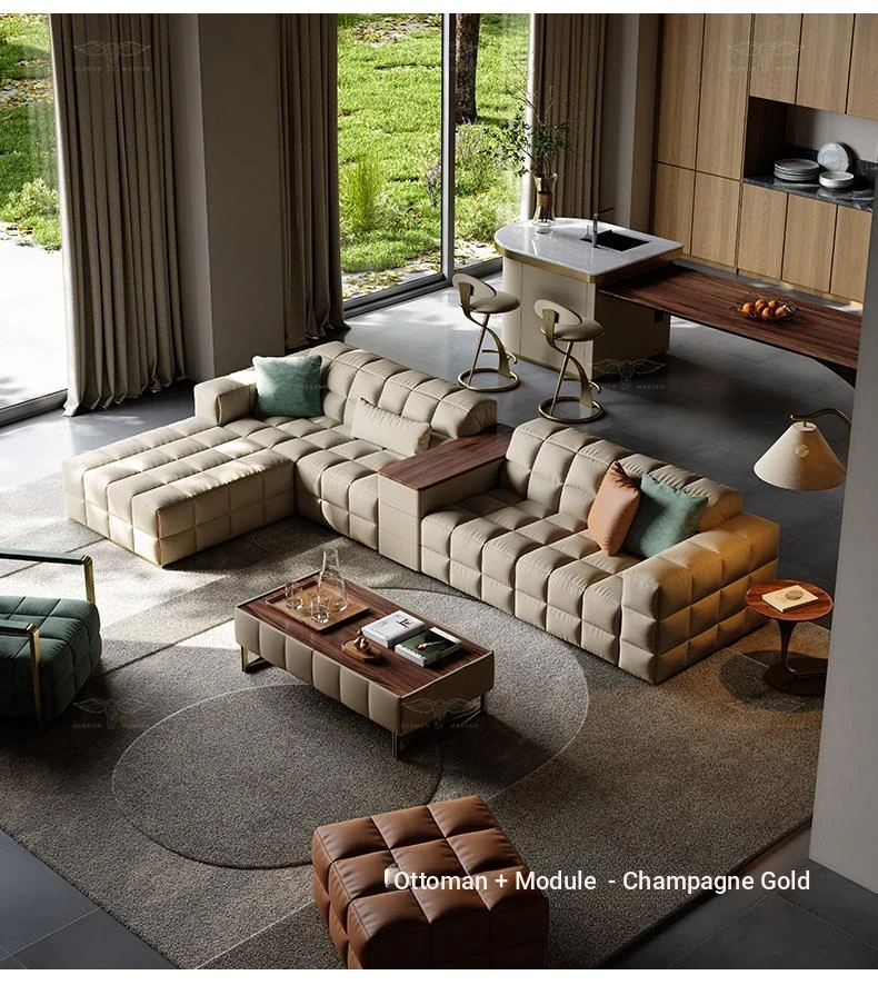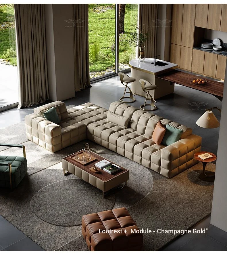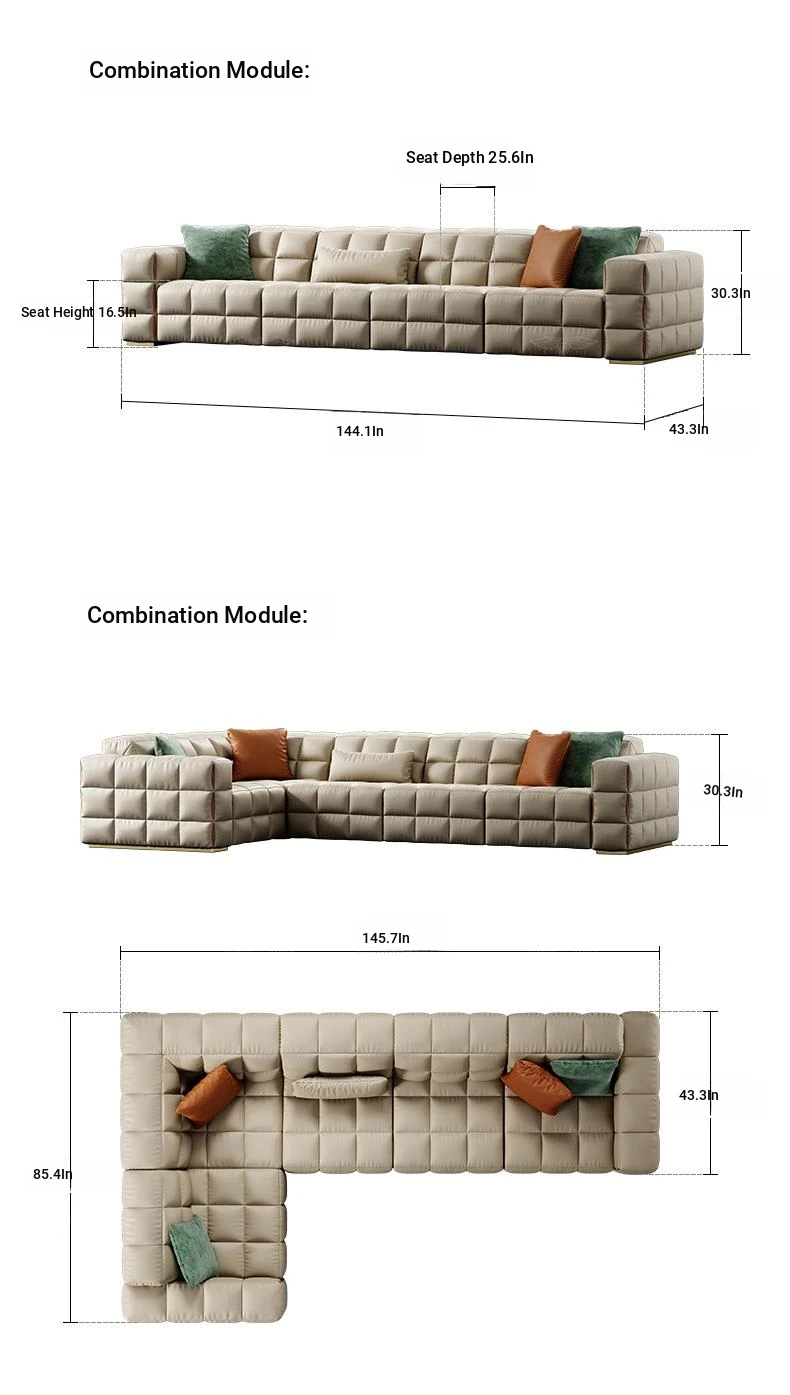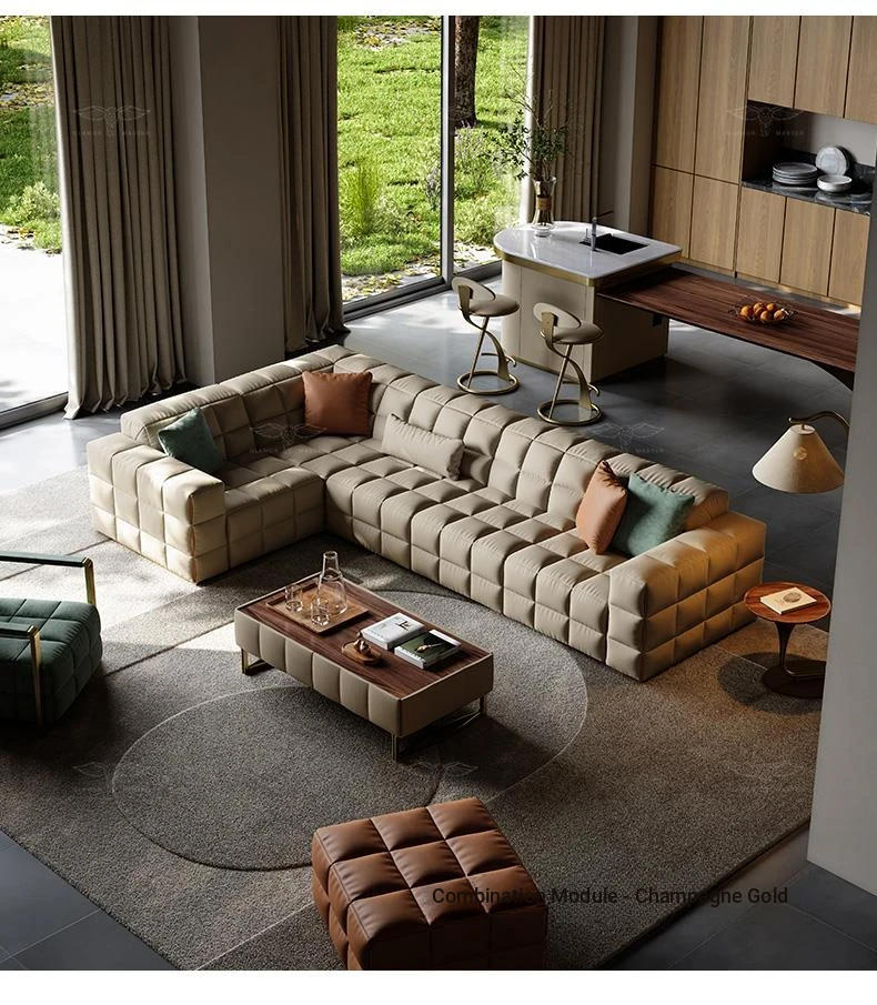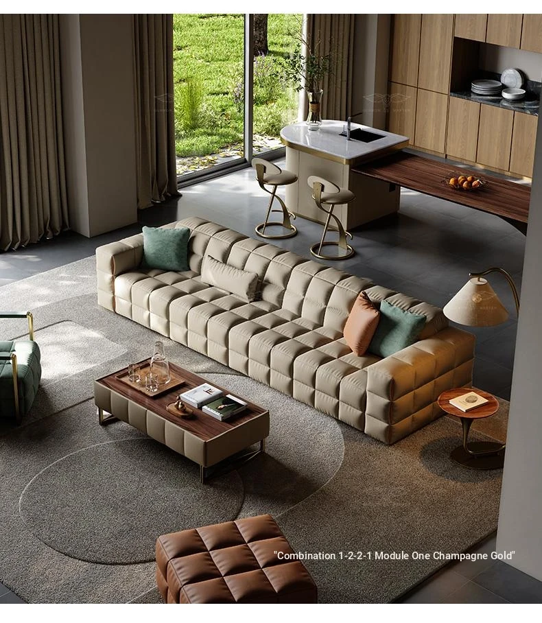 Luxury Electric Modular Sofa Set - Multi-functional Genuine Leather Sofa for Villa Living Room, Perfect for Comfort and Style