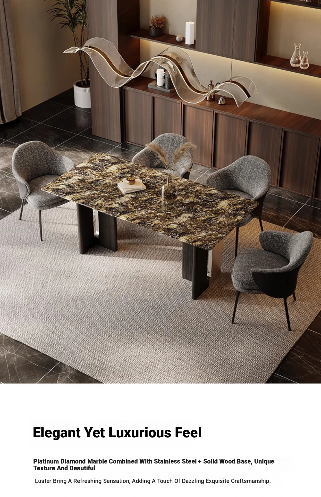 Platinum diamond [78.74in*35.43in natural Import luxury stone] + dining chair * 10