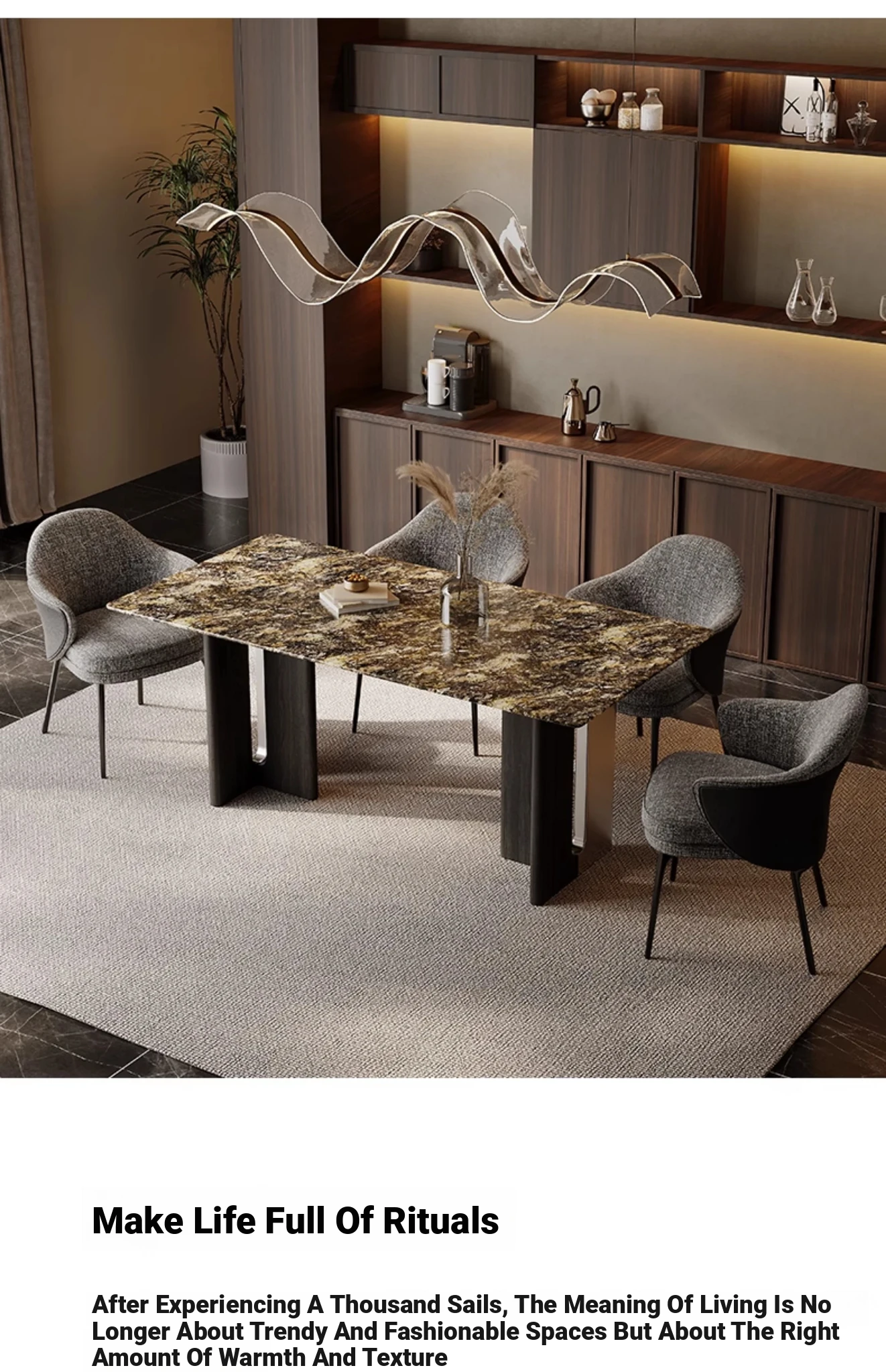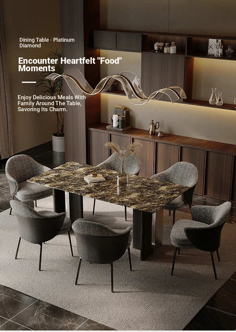Luxury Platinum Diamond Dining Table - Natural Stone Square Design for High-End Italian Minimalist Style | Elegant Dining Experience in Foshan, Guangdong