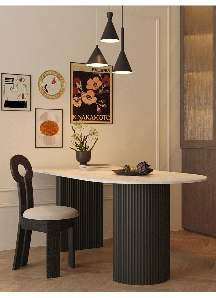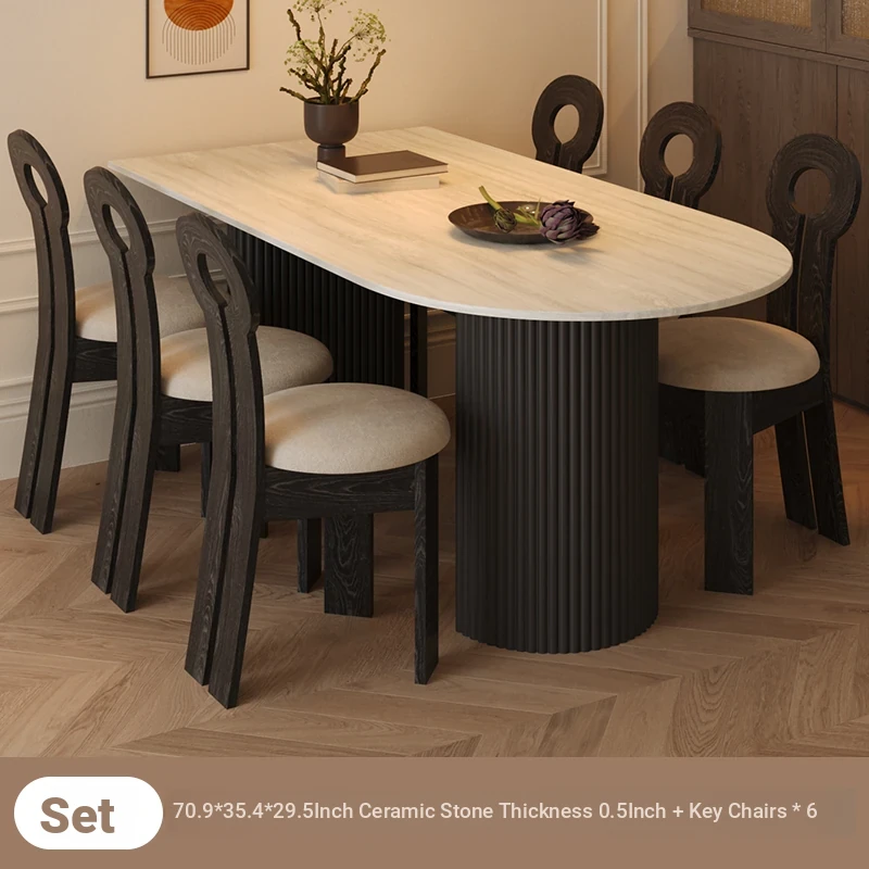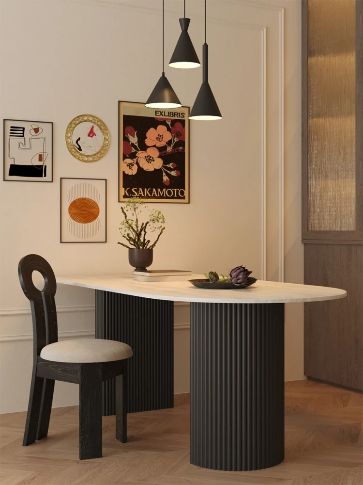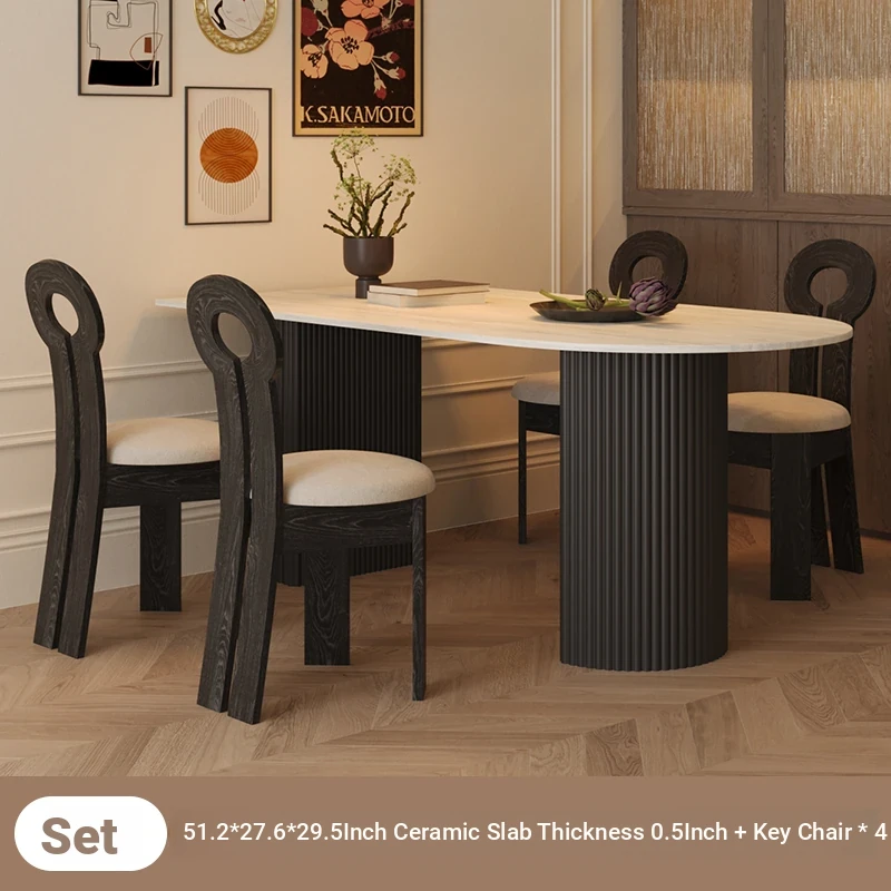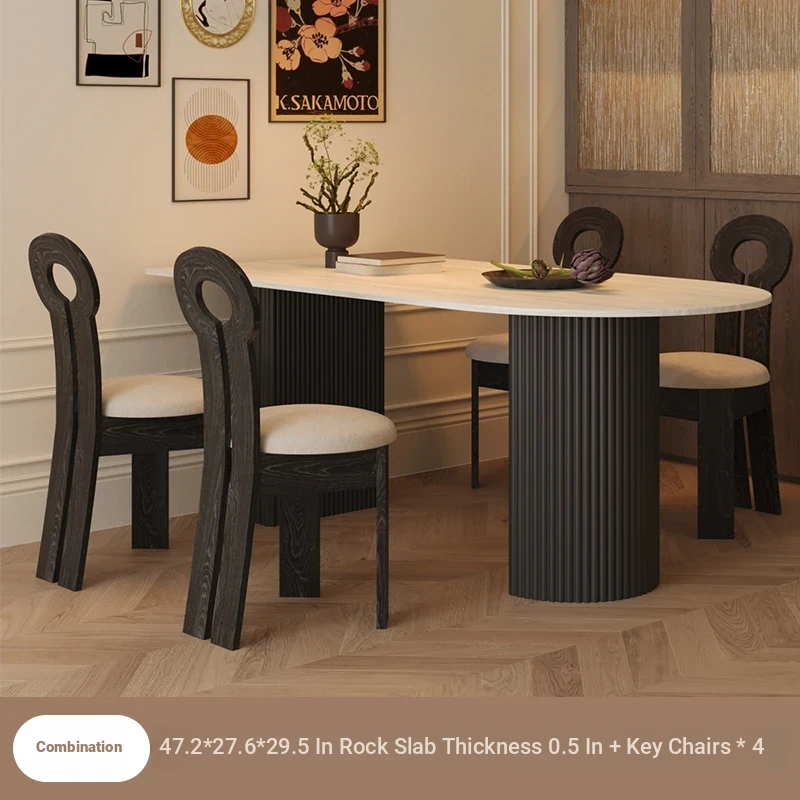 Mid-Century Modern Round Stone Dining Table Set for Small Spaces - Wabi-Sabi Style Wall-Mounted Half Circle Table with Matching Chairs, Perfect for Cozy Homes and Casual Meetings