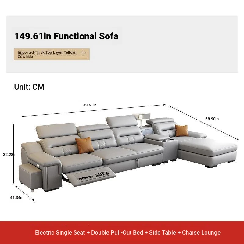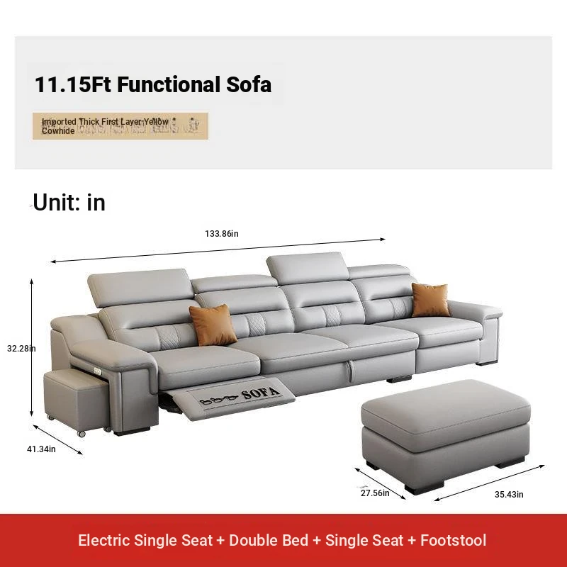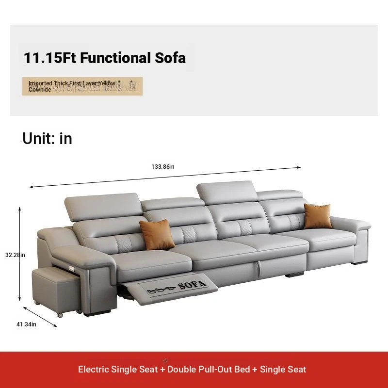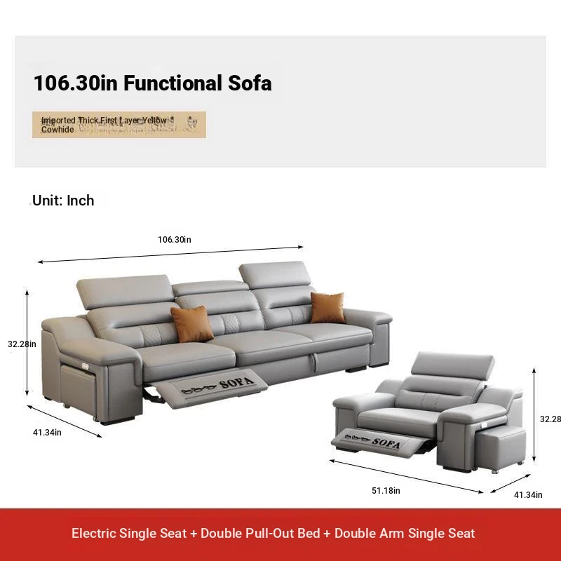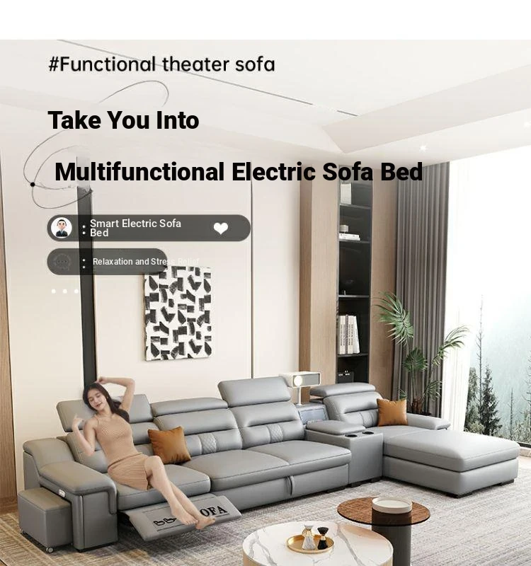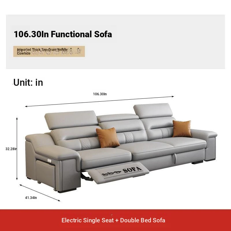 Minimalist Electric Sofa for Spacious Living Rooms - Imported Leather Smart Furniture with Expandable Design