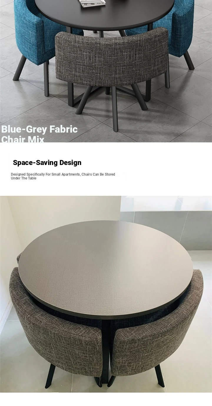 Black circle + blue gray cloth chair 1 table 4 chairs 90*90*75