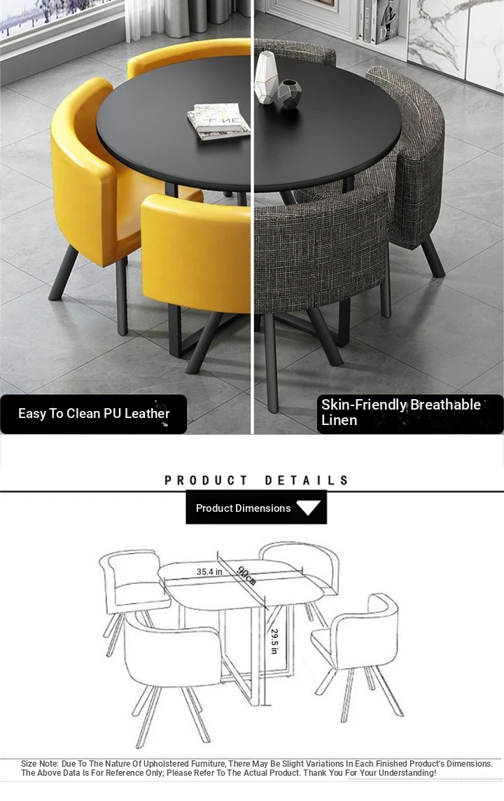 Black circle + yellow cloth chair 1 table 4 chairs 90*90*75