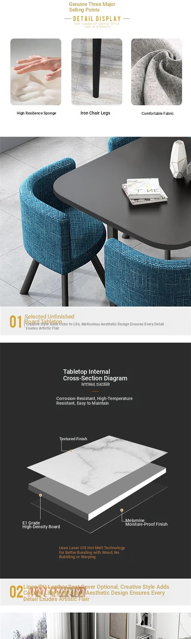 Black circle + blue cloth chair 1 table 4 chairs 90*90*75