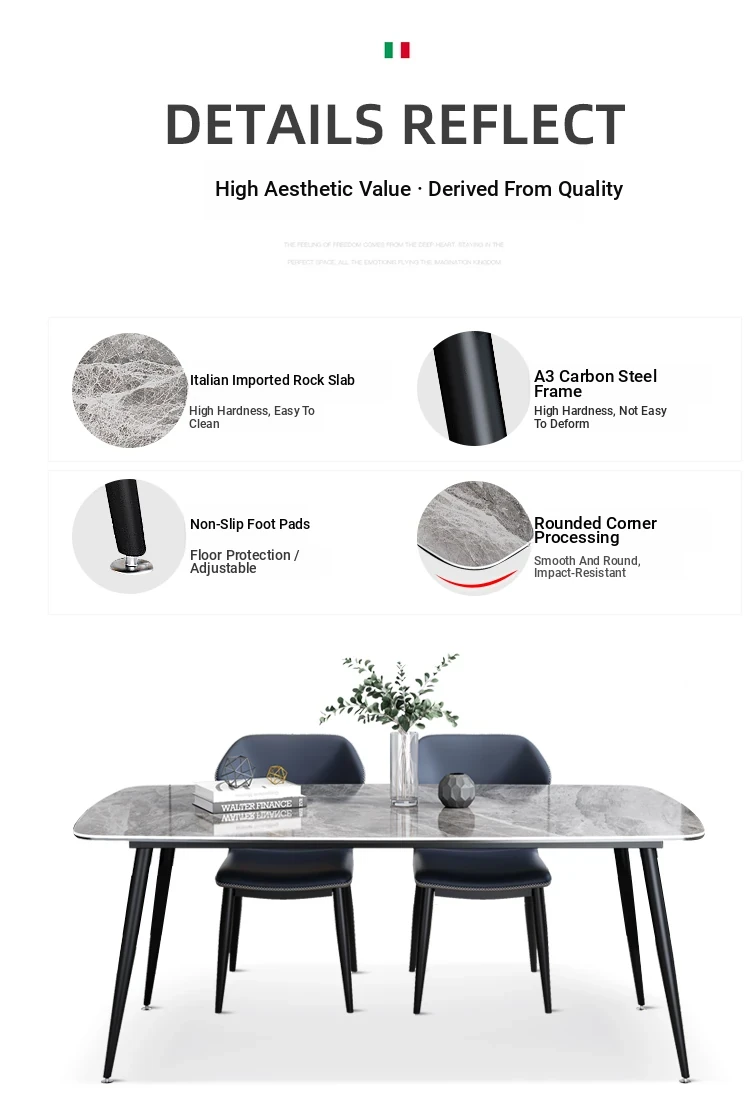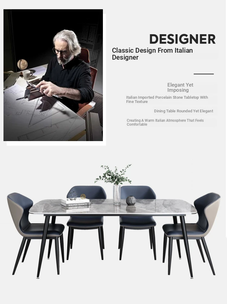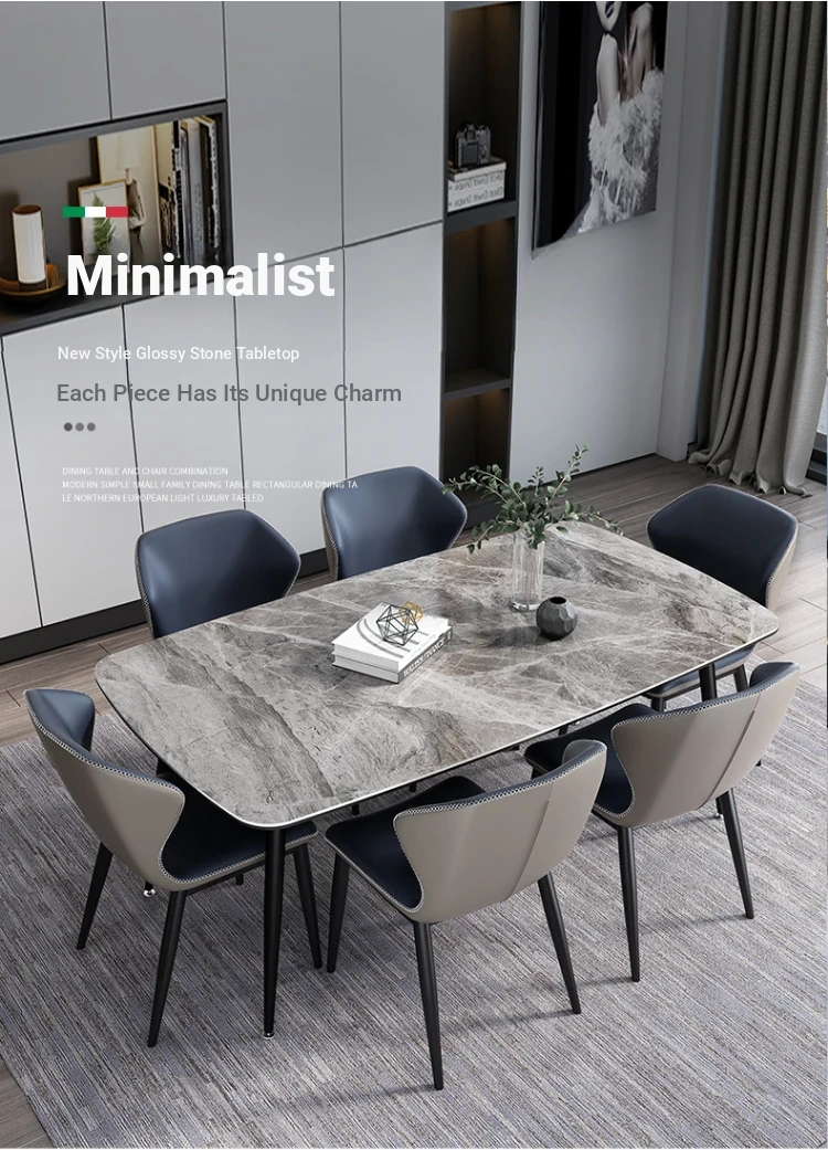 Modern Minimalist Italian Ceramic Dining Table Set - Space-Saving Rectangular Table with Chairs for Small Homes, Stylish and Affordable Design