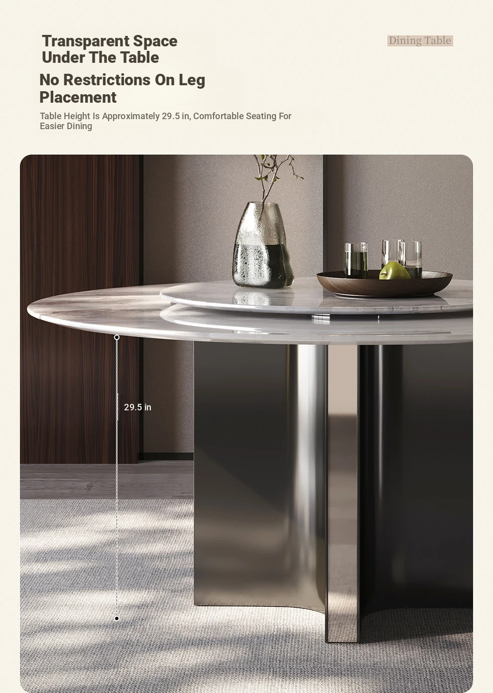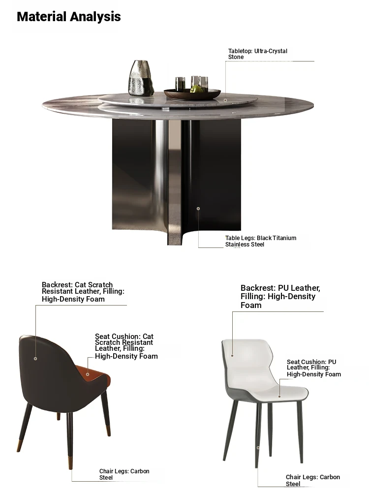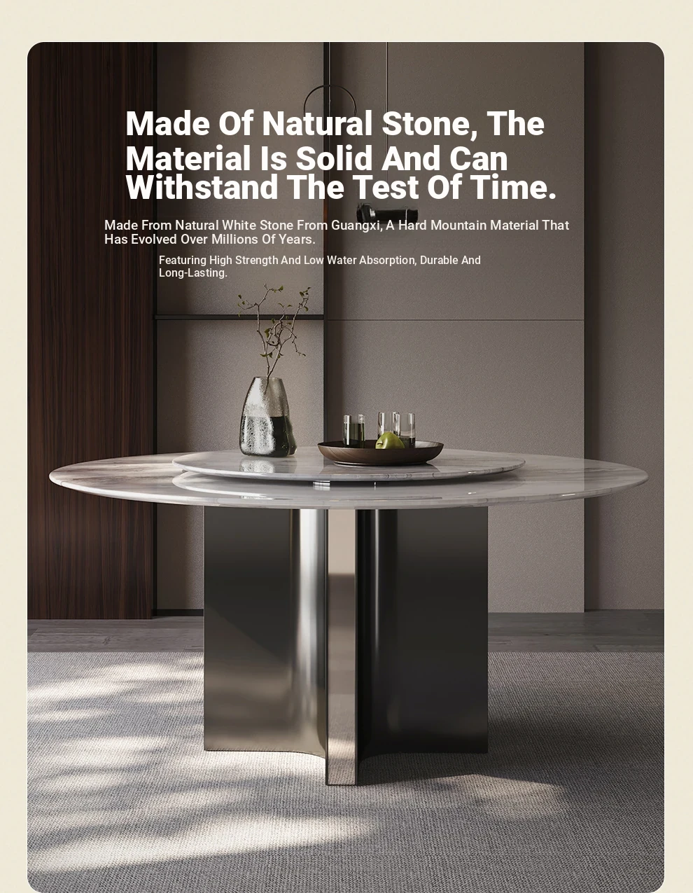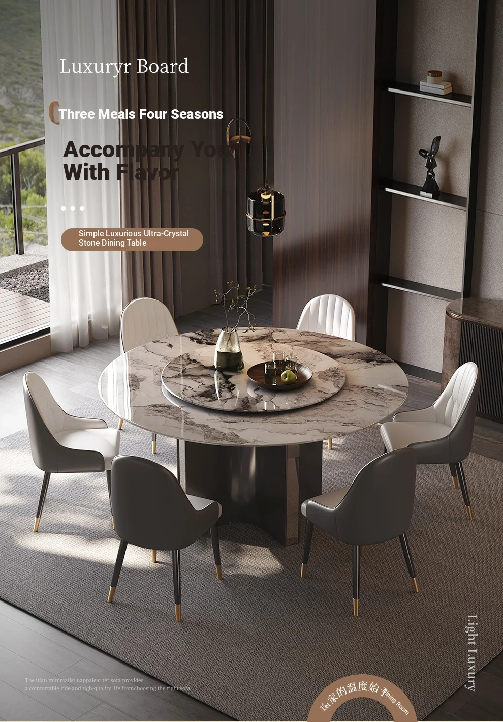 Modern Minimalist Italian Luxury Marble Dining Table - Round Super Crystal Stone Set for Spacious Apartments - Stylish Dining Table and Chair Combination
