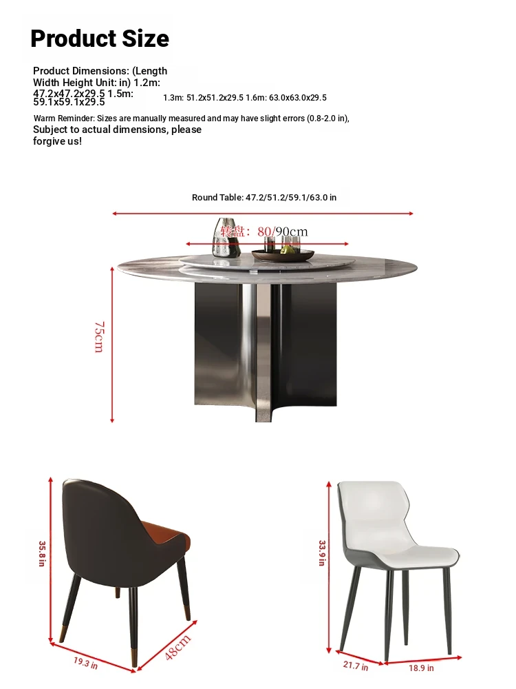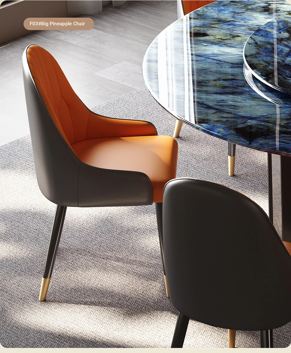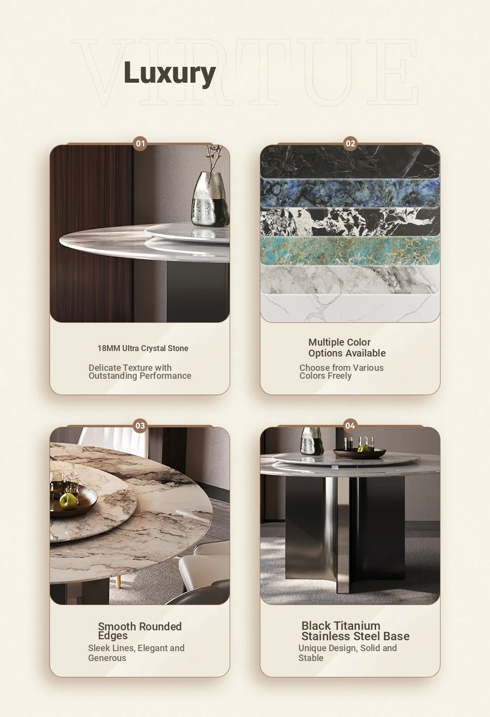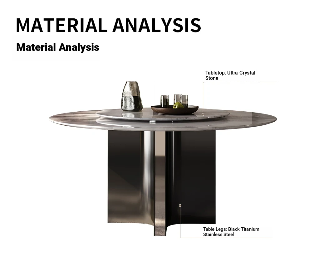 Modern Minimalist Italian Luxury Marble Dining Table - Round Super Crystal Stone Set for Spacious Apartments - Stylish Dining Table and Chair Combination
