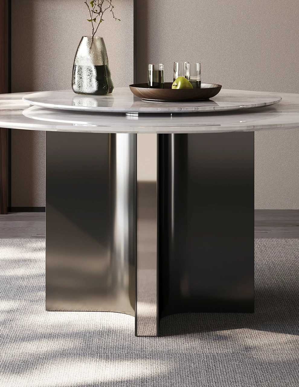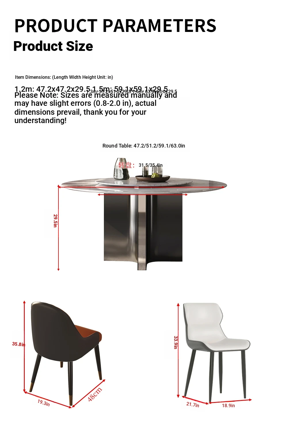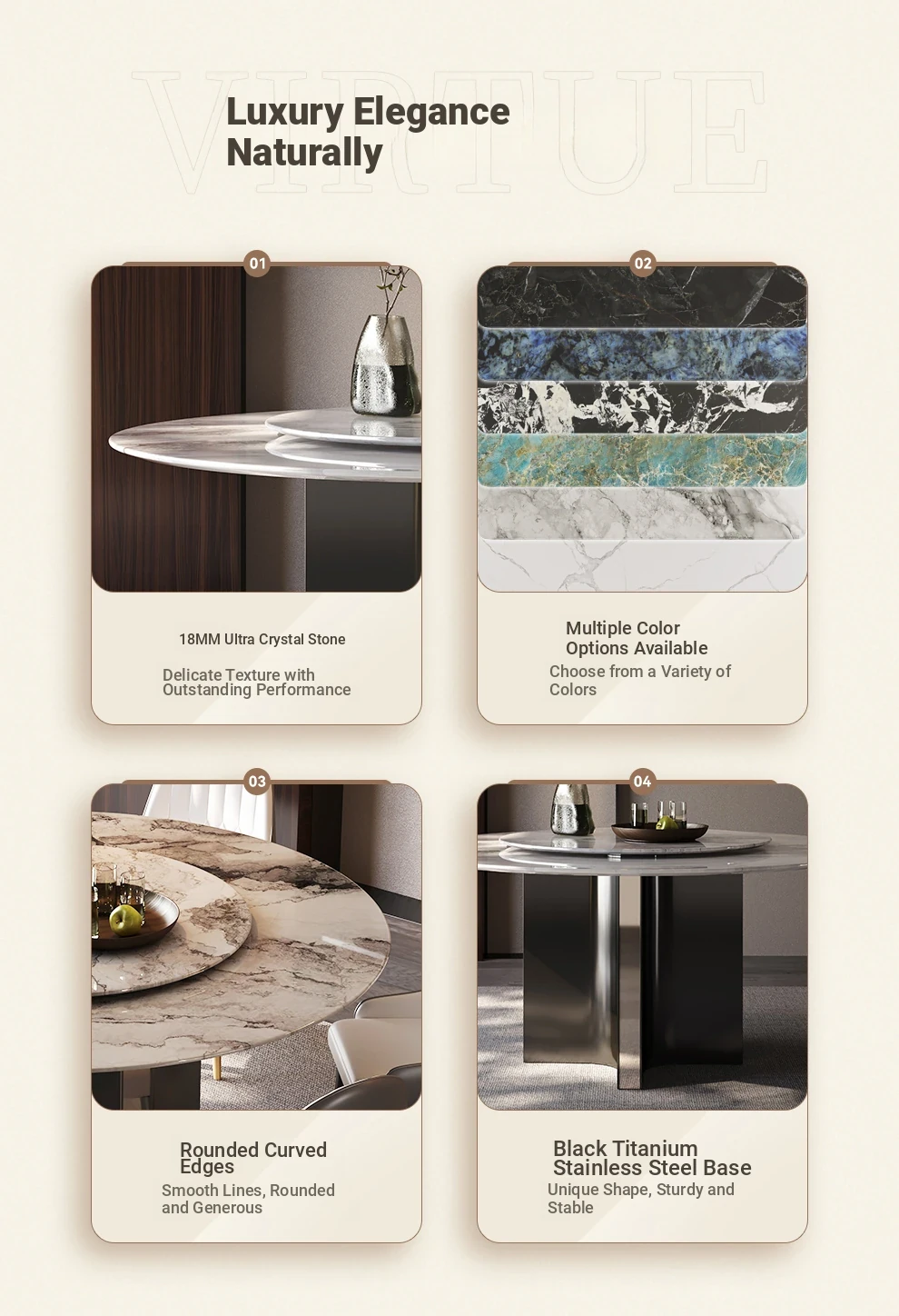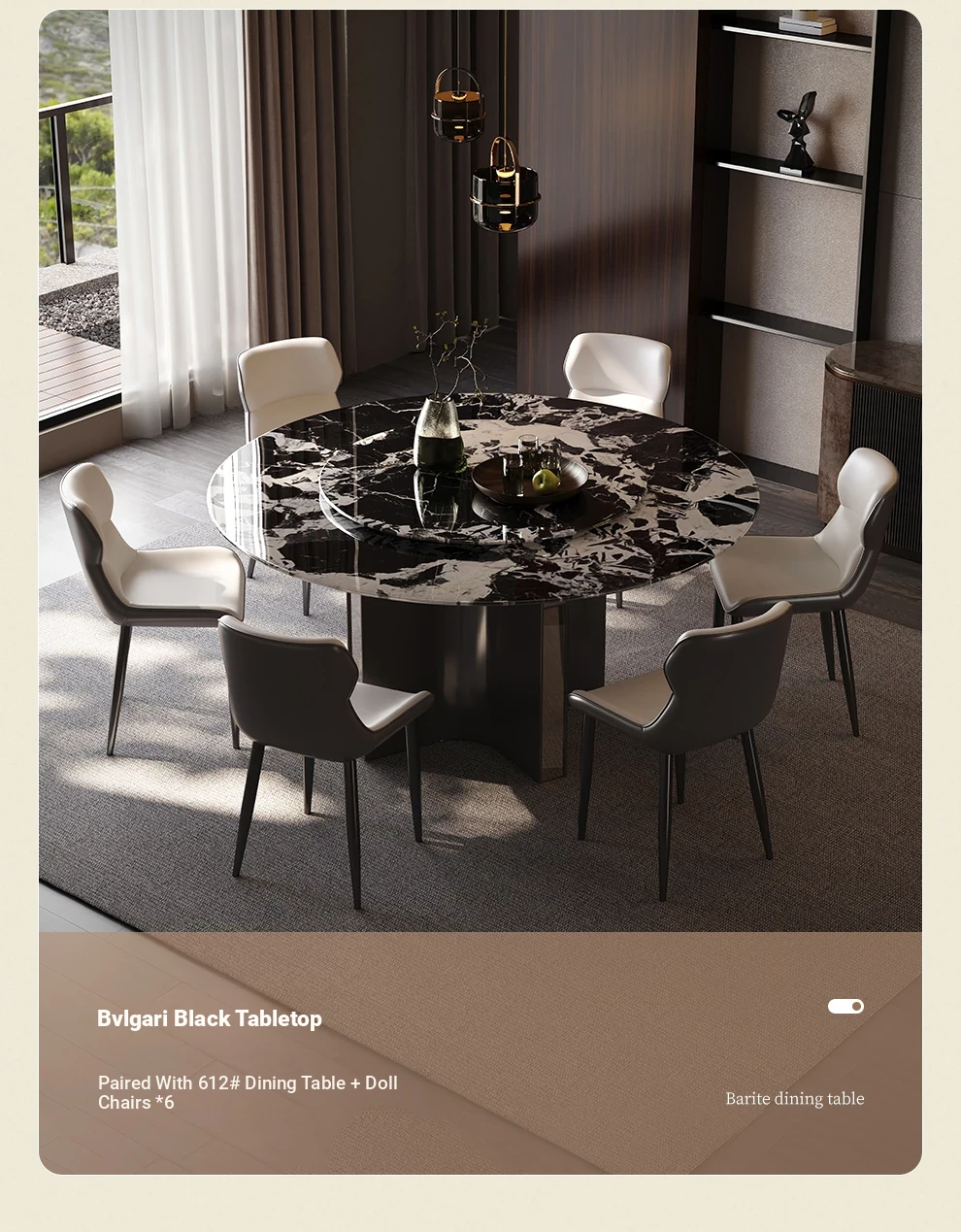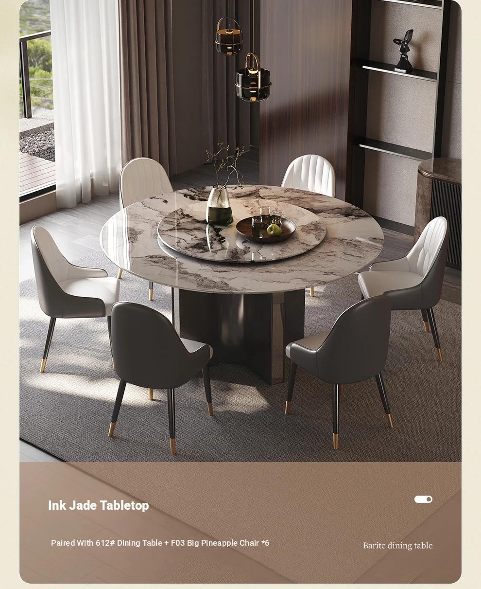 Modern Minimalist Italian Luxury Marble Dining Table - Round Super Crystal Stone Table Set with Chairs for Small to Medium Spaces