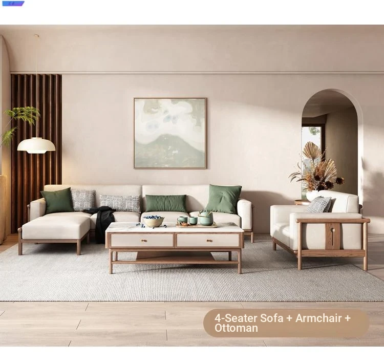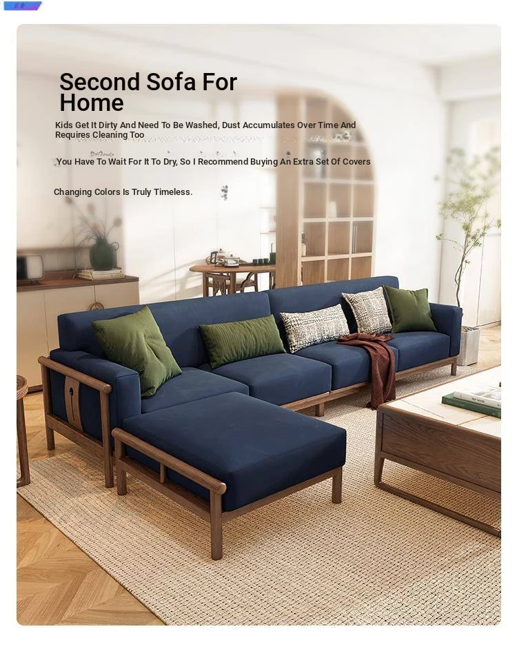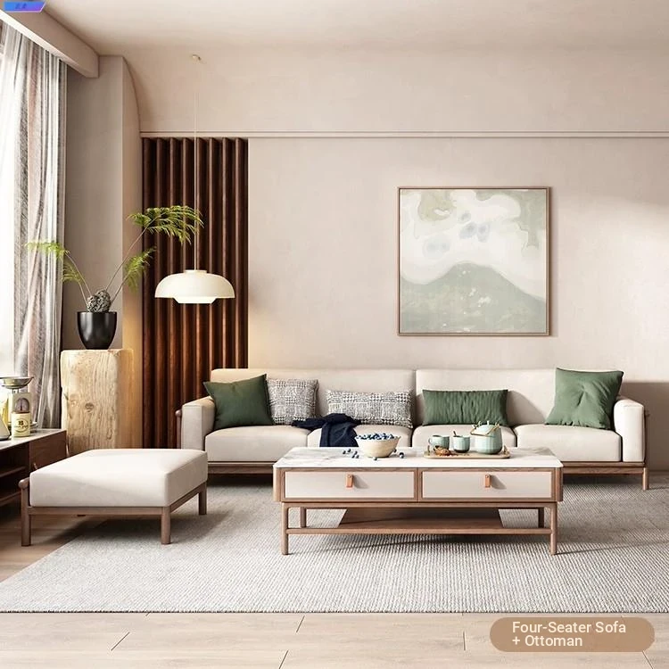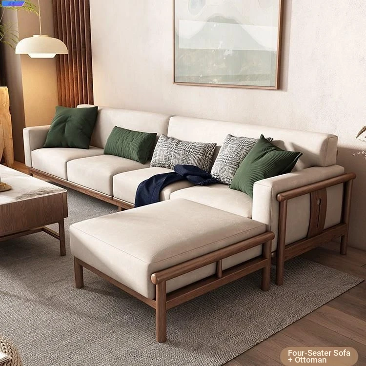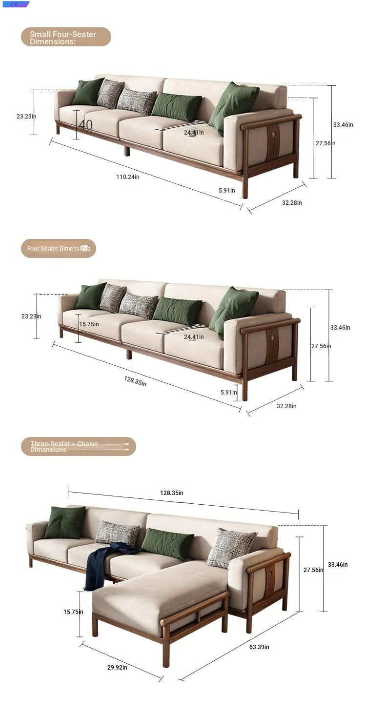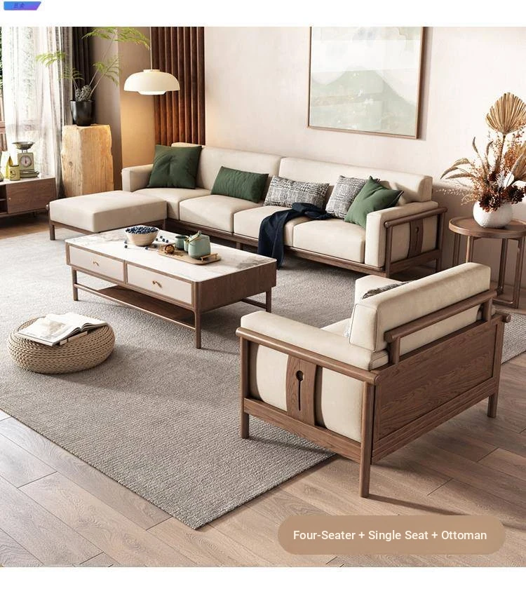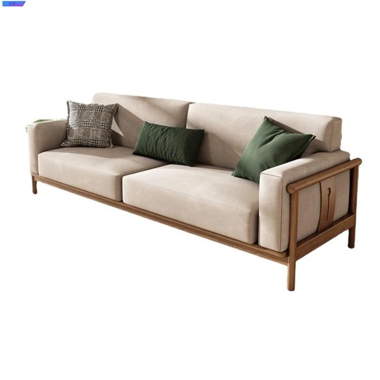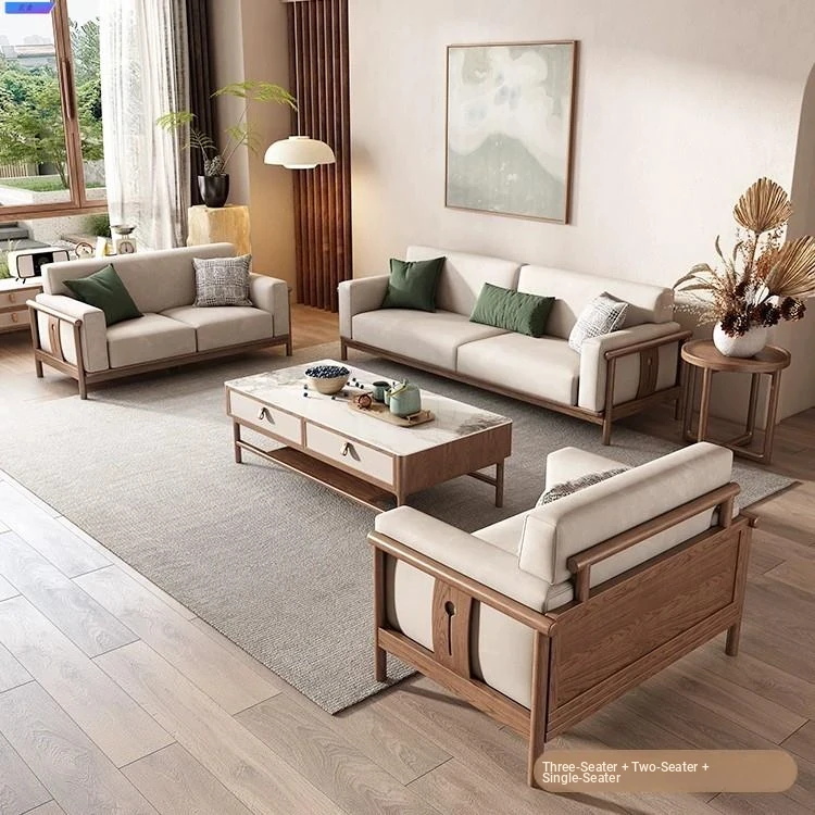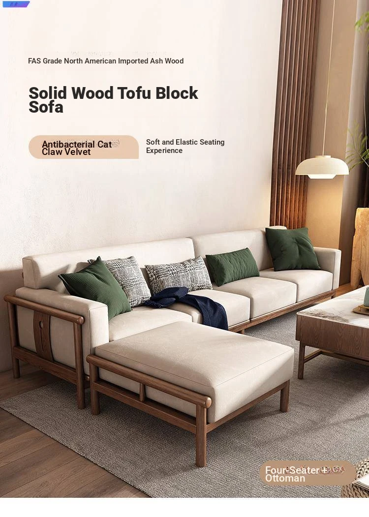 Modern Minimalist New Chinese Style Solid Wood Sofa for Small Spaces - Nordic Tech Fabric with Ash Wood Finish