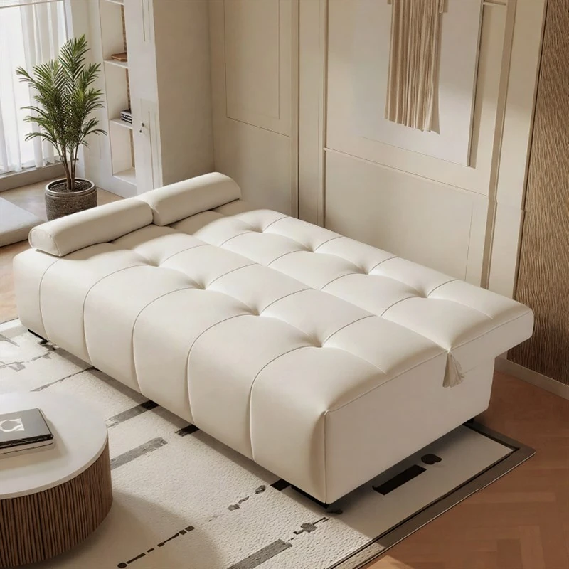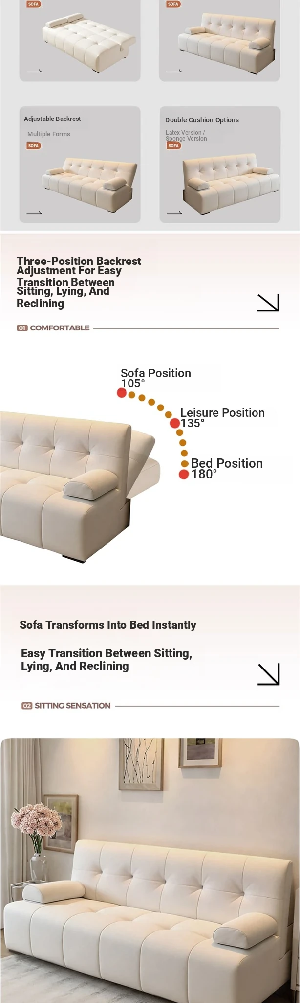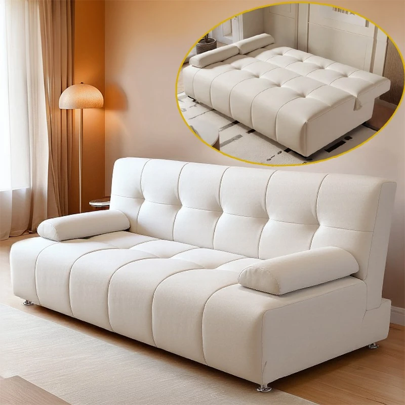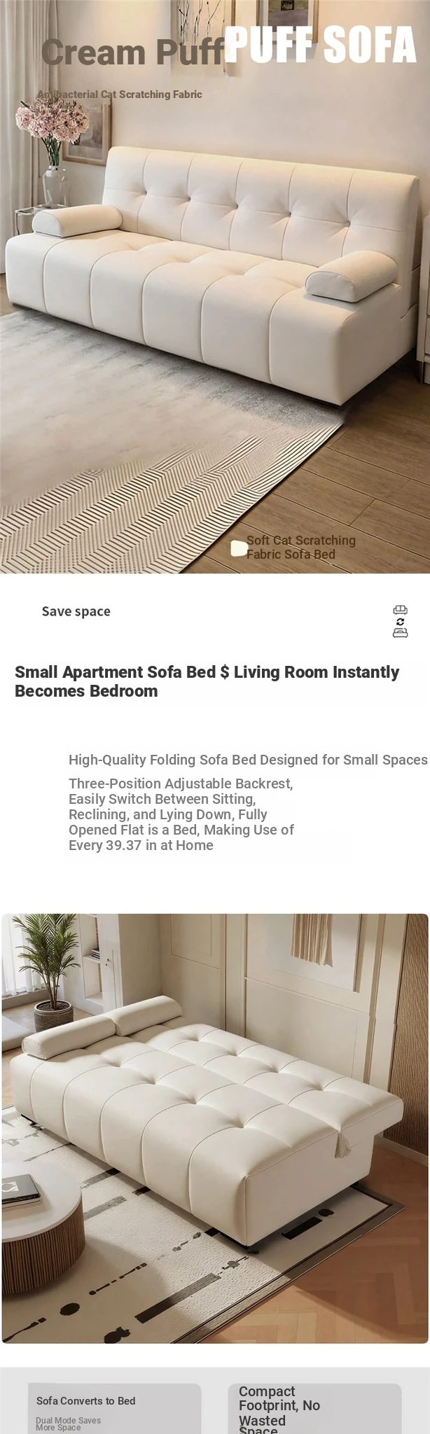Multifunctional Foldable Sofa Bed for Small Spaces - French Cream Puff Style, Cozy Velvet Fabric, Perfect for Living Rooms, Dual Position Design