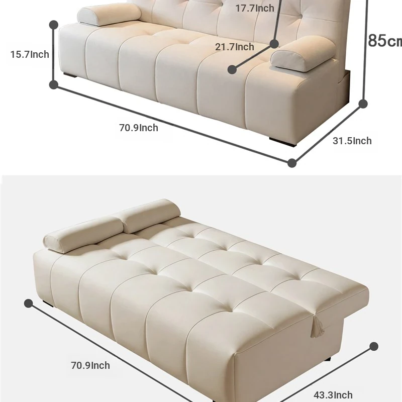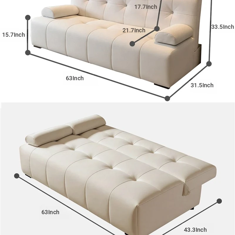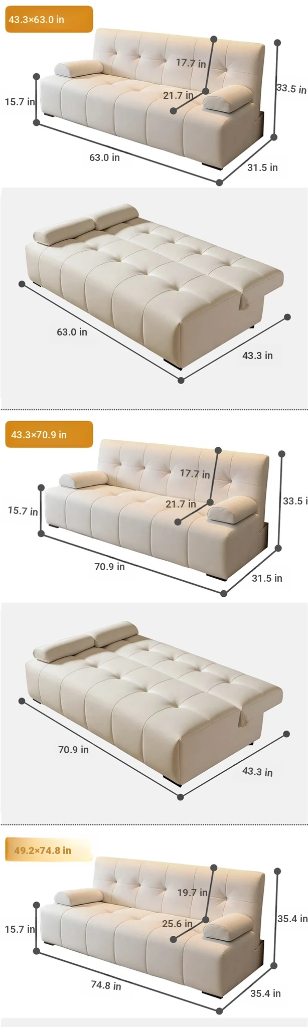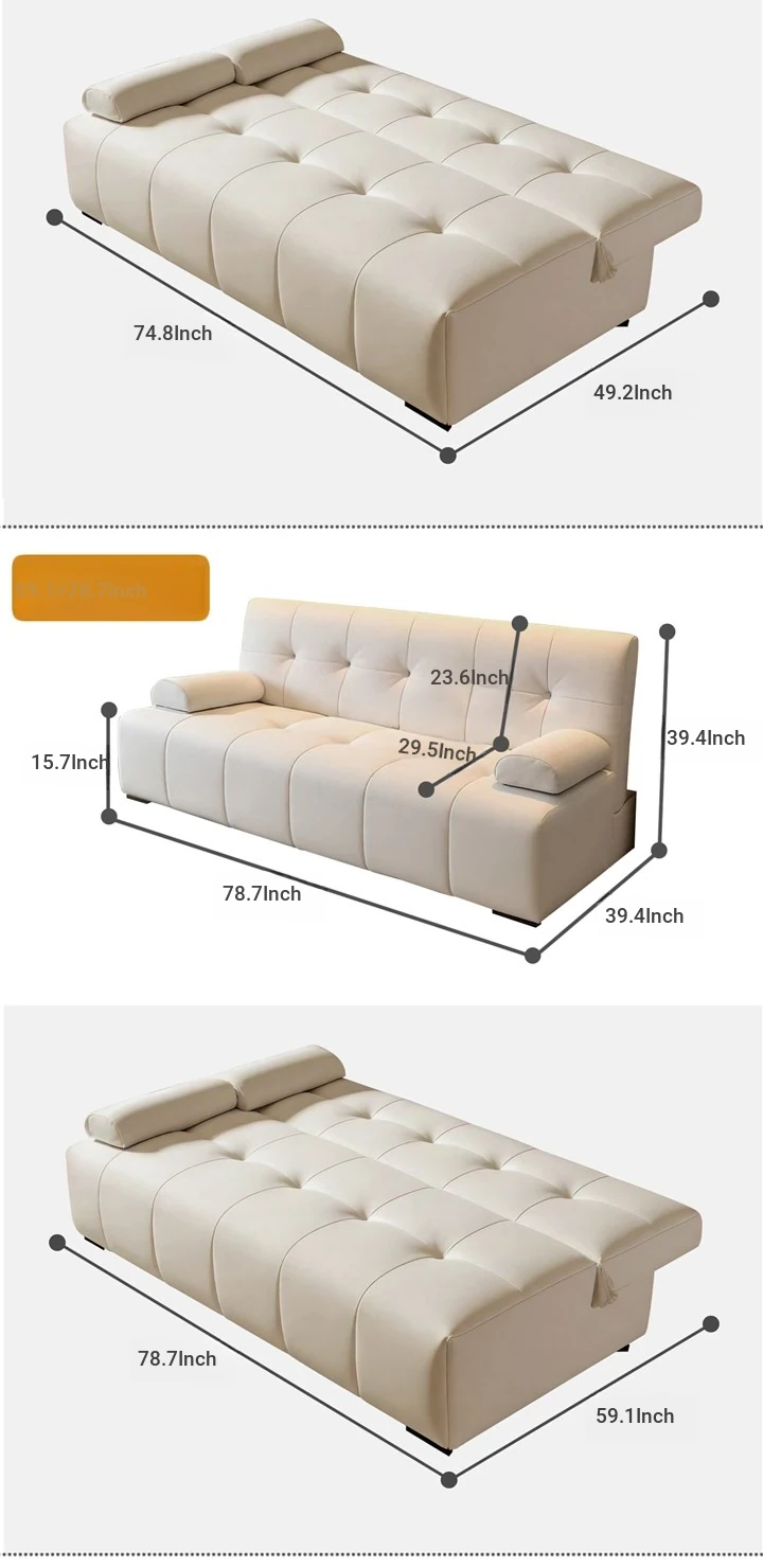 Multifunctional Foldable Sofa Bed for Small Spaces - French Cream Puff Style, Cozy Velvet Fabric, Perfect for Living Rooms, Dual Position Design