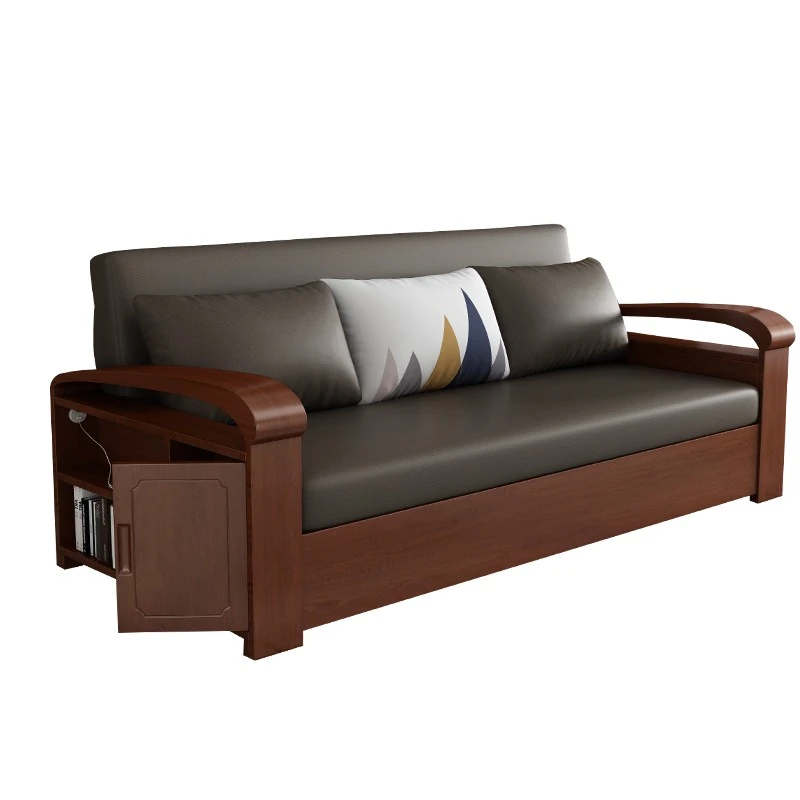 Multifunctional Solid Wood Sofa Bed with Fabric - Foldable, Space-Saving Design for Small Living Rooms, Perfect for Couples or Individuals, Trendy Minimalist Style