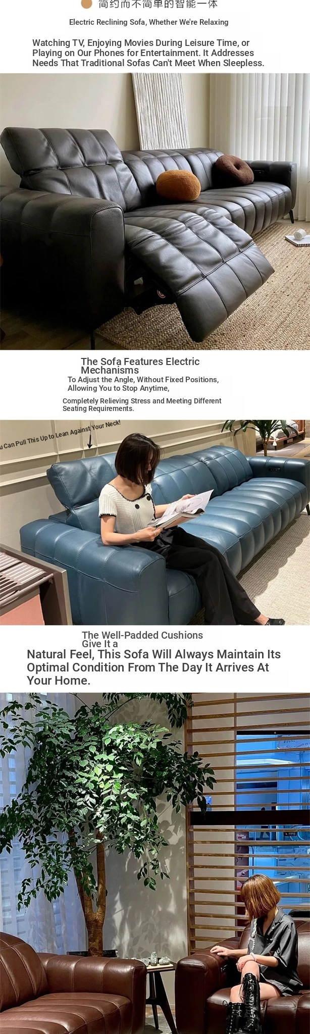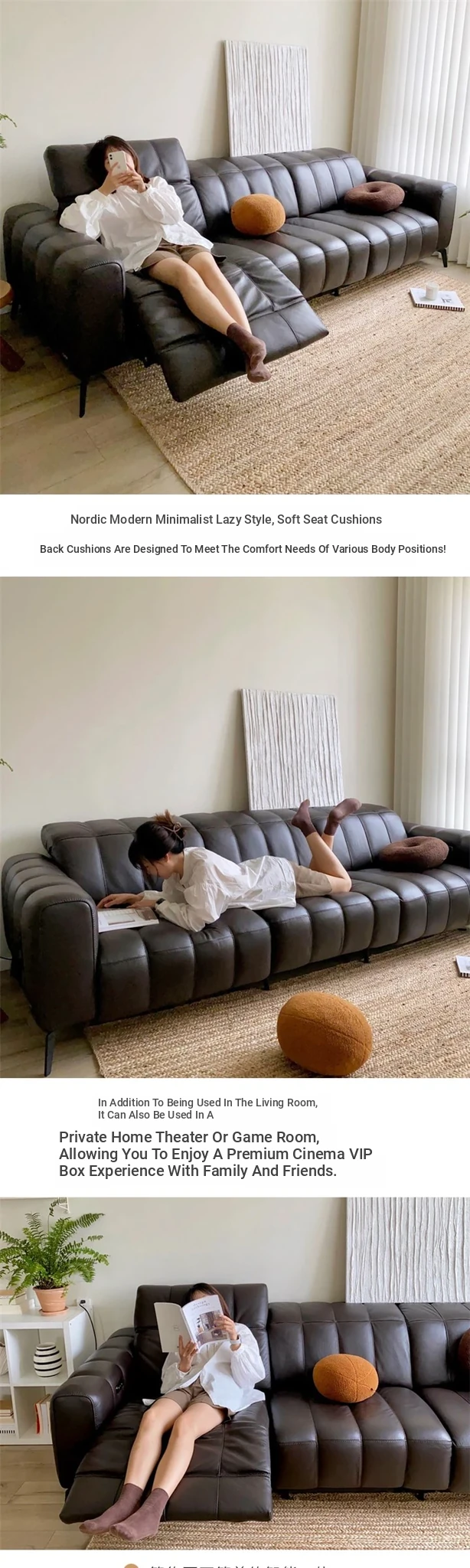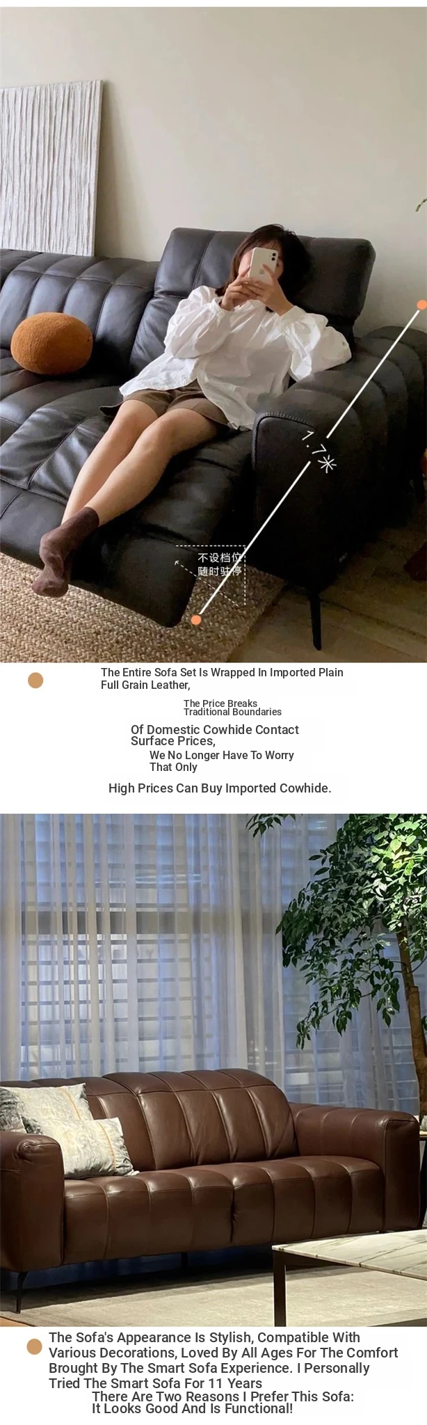 Natuo Minimalist Electric Multifunctional Genuine Leather Sofa - Modern Simple Furniture for Small Spaces, Perfect for Cozy Living Rooms