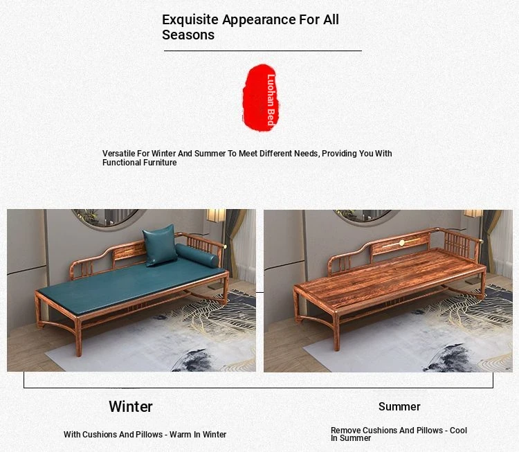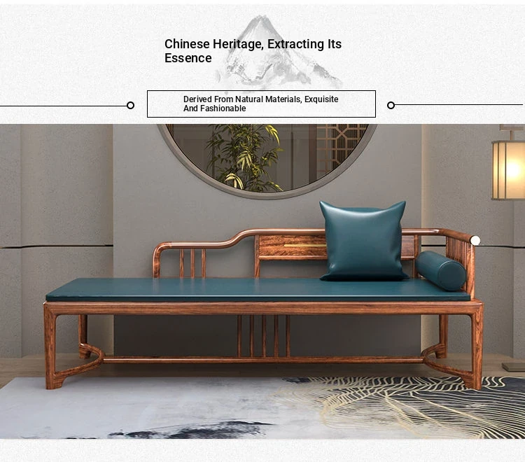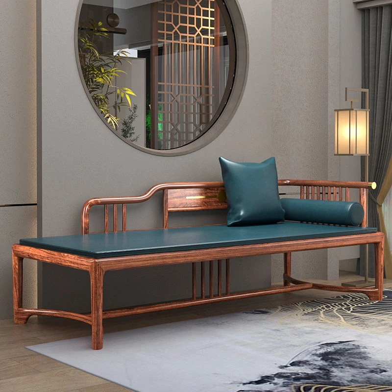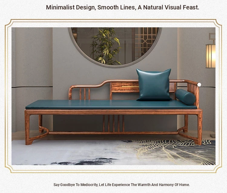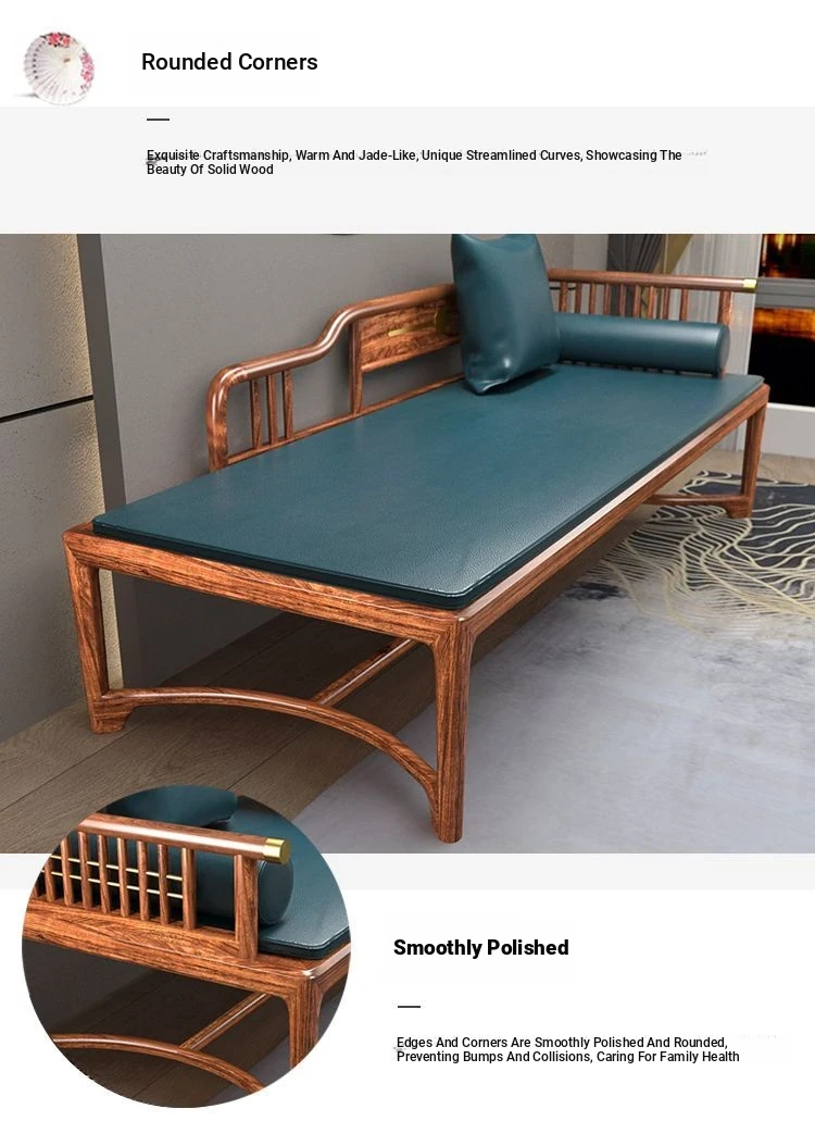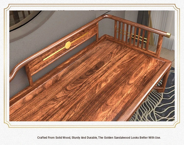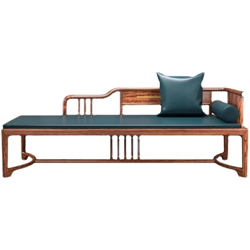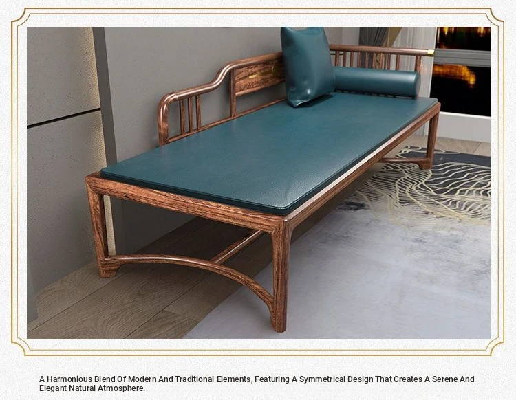 New Chinese Style Black Gold Wood Solid S-Shaped Couple's Chaise Lounge - Elegant Beauty Bed Sofa for Small Spaces, Perfect for Relaxation and Comfort