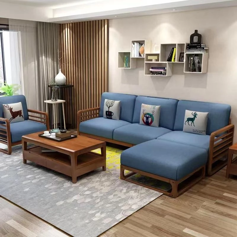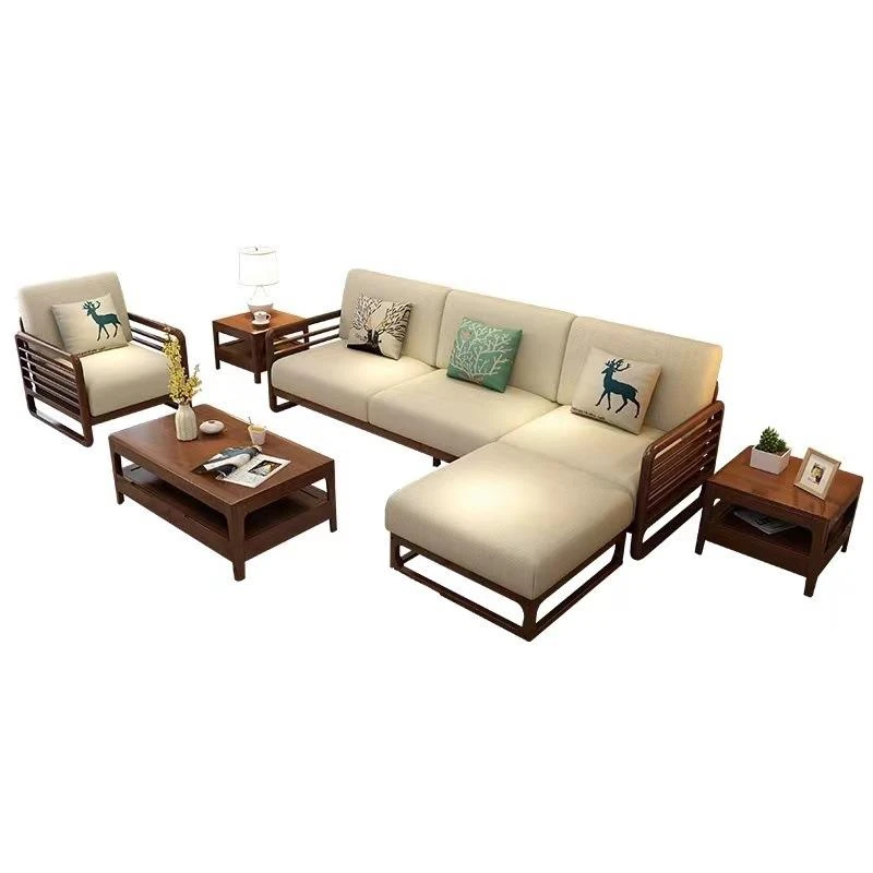 Nordic Solid Wood Sofa Set - Modern Minimalist Fabric Daybed for Small Spaces, Perfect for Living Rooms, Available in 3-Seat and 4-Seat Combinations.