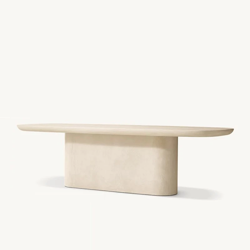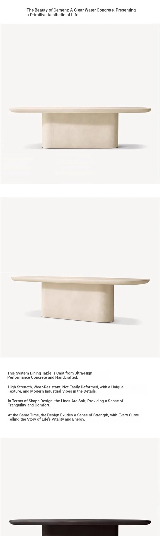 Puxu Li Cement Dining Table - Stylish Home Concrete Oval Long Table for Dining, Meetings, and Outdoor Patio Use