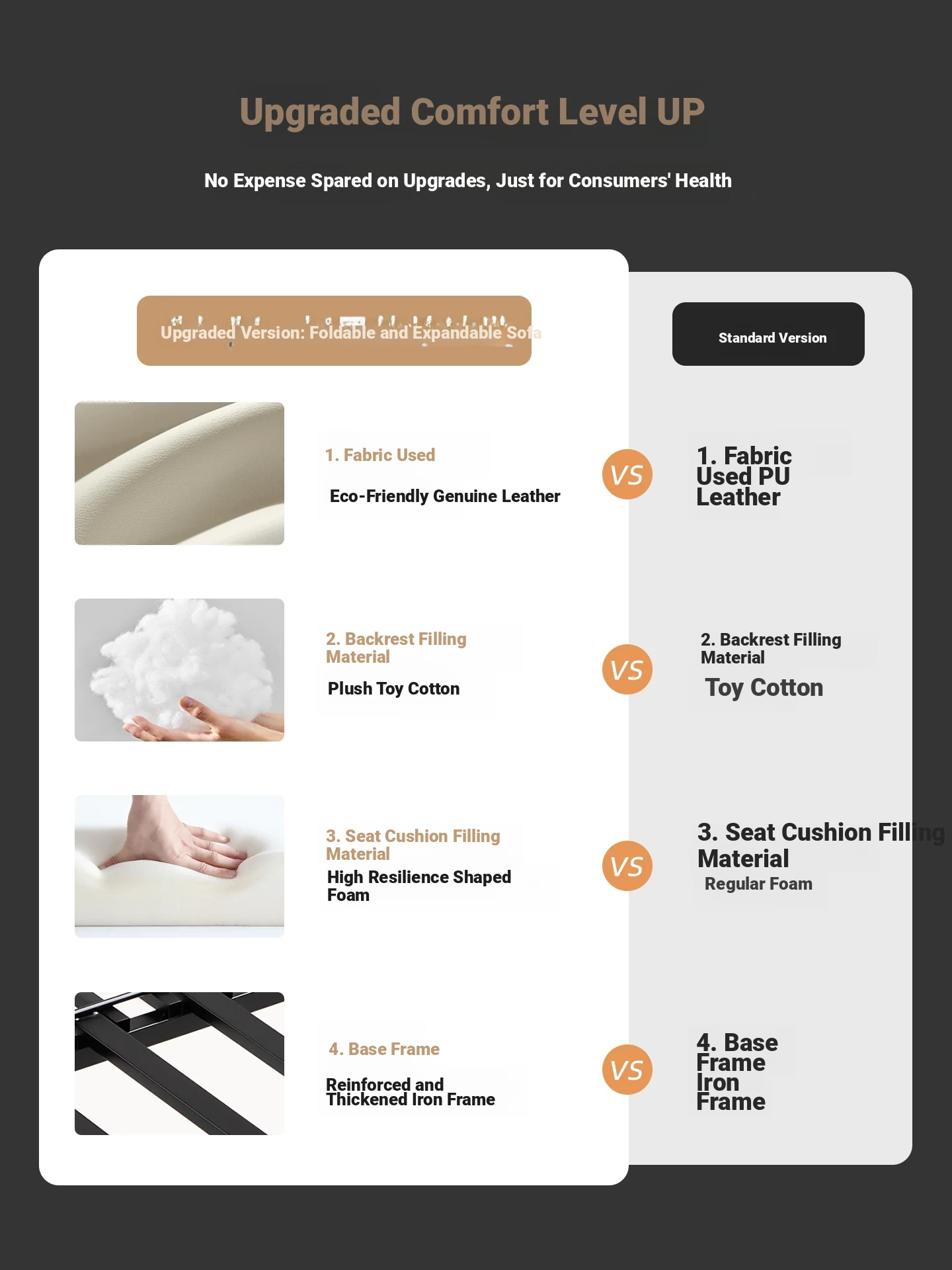 Qimuqi Multifunctional Sofa Bed for Small Spaces - Foldable, Expandable, and Versatile for Living Rooms, Perfect for Singles and Couples!