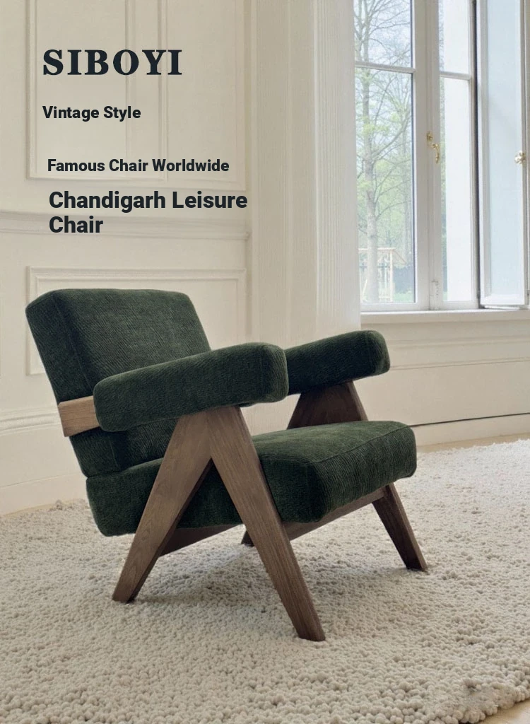 Retro Chandigarh Designer Armchair - Wabi-Sabi Style Single Sofa for Living Room and Balcony - Perfect for Relaxation and Aesthetic Appeal