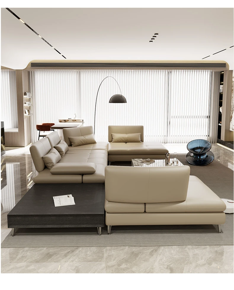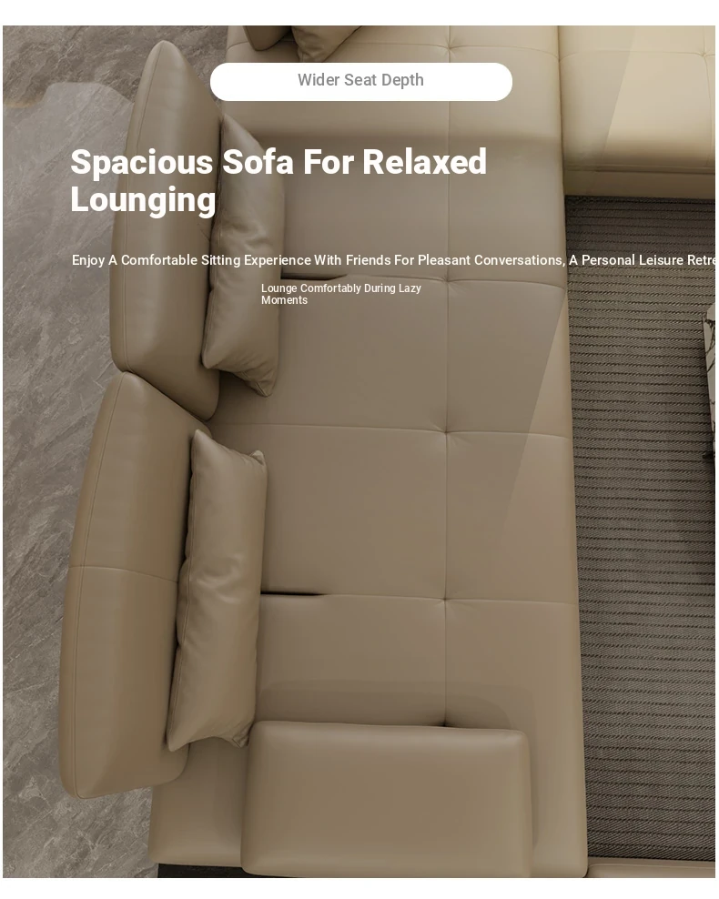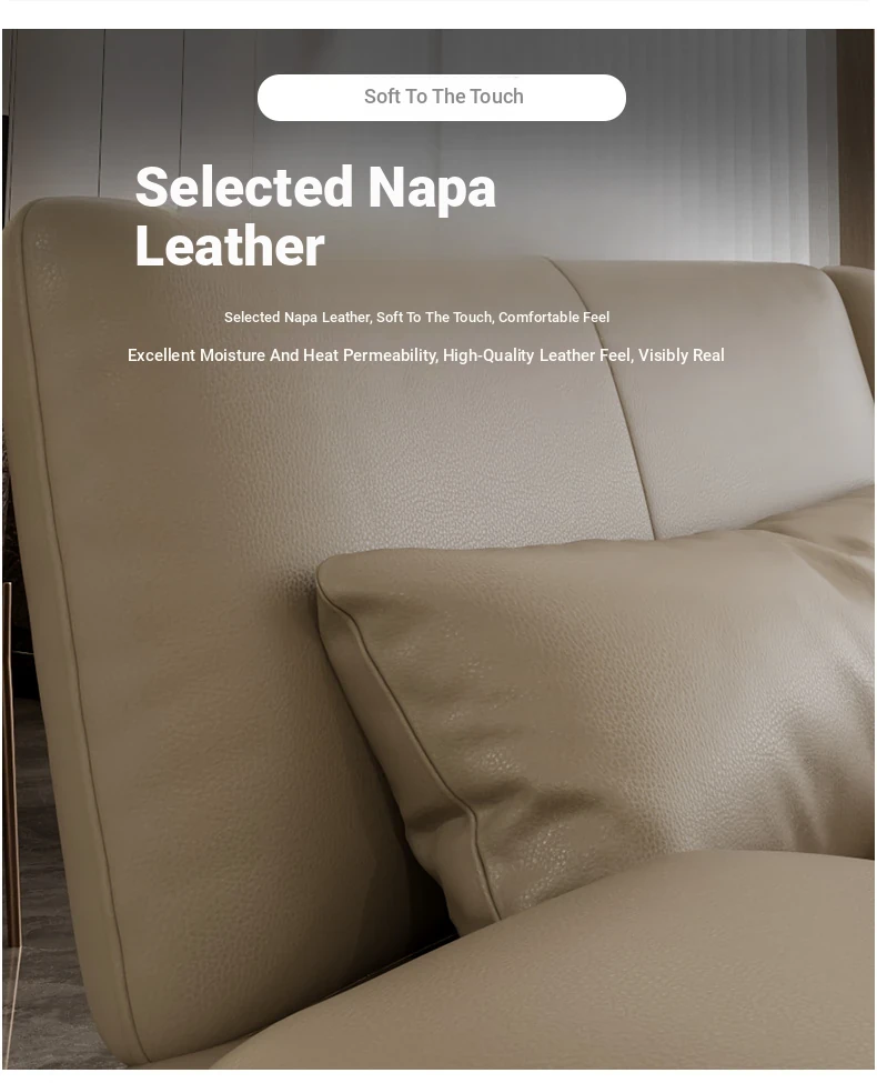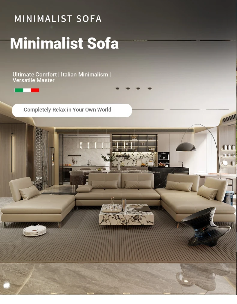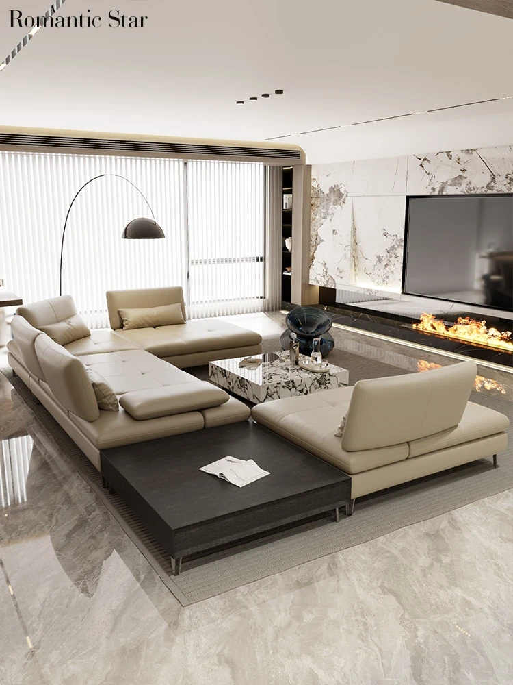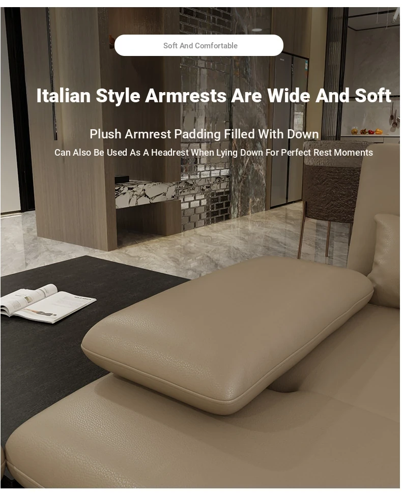 Romantic Star Minimalist Italian Leather Rocca Sofa - Spacious Design for Villas and Large Living Rooms with Adjustable Depth for Ultimate Comfort