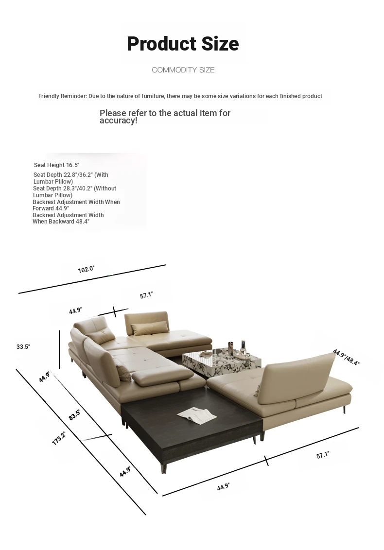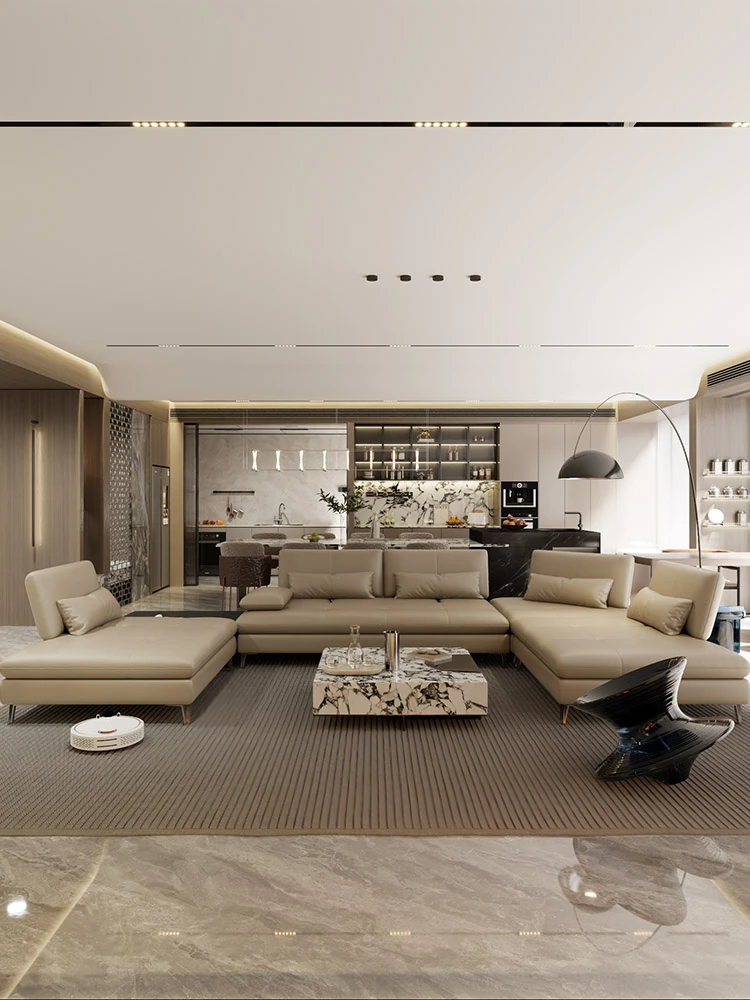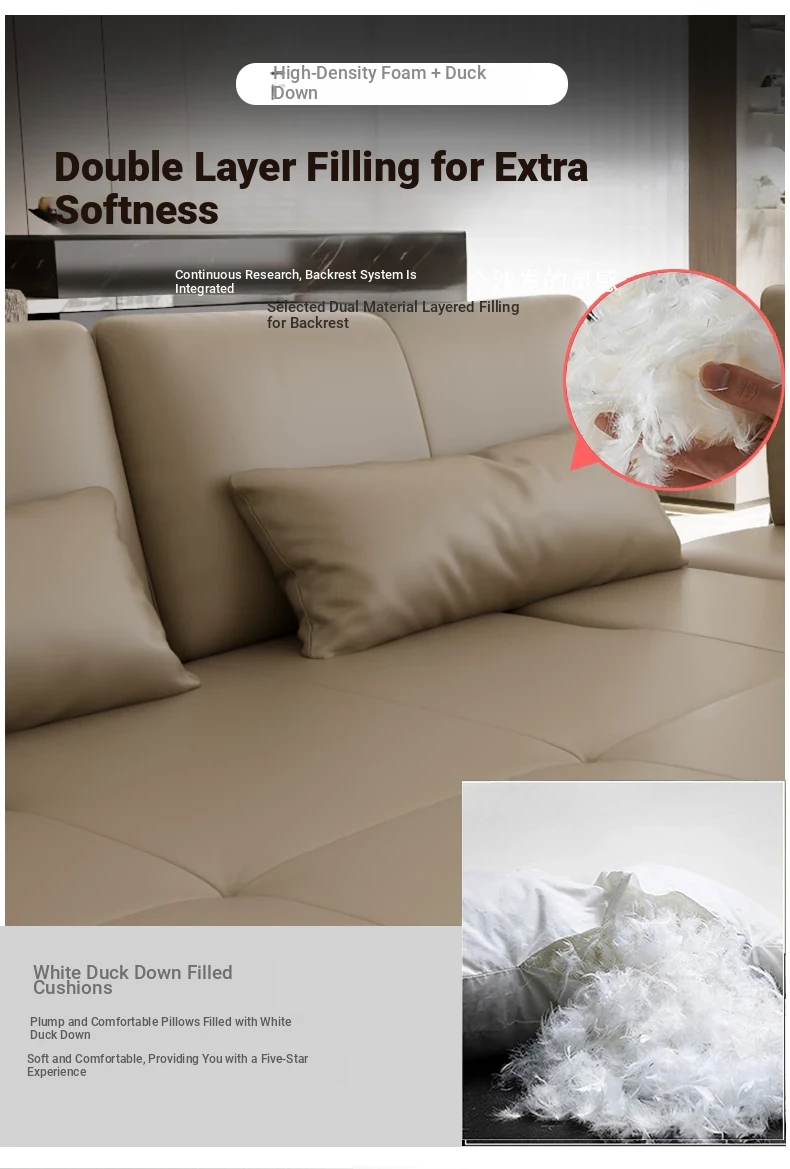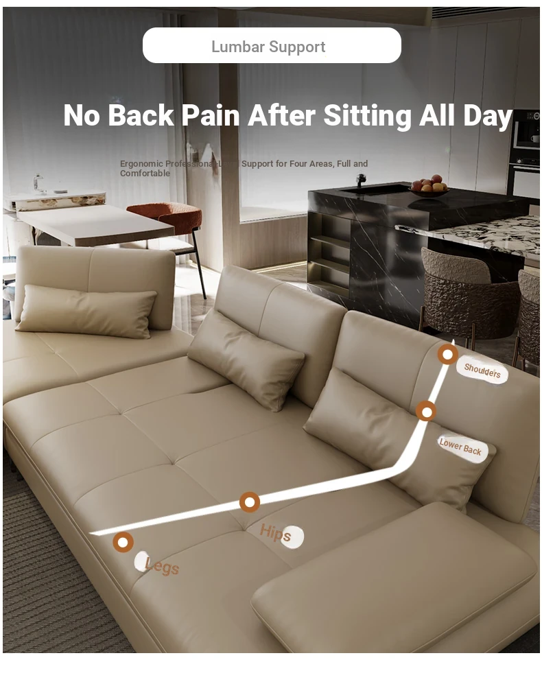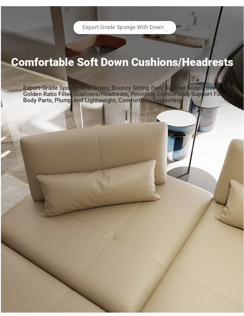 Romantic Star Minimalist Italian Leather Rocca Sofa - Spacious Design for Villas and Large Living Rooms with Adjustable Depth for Ultimate Comfort