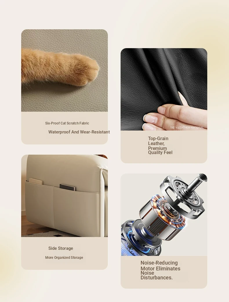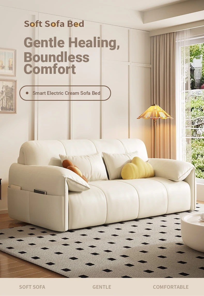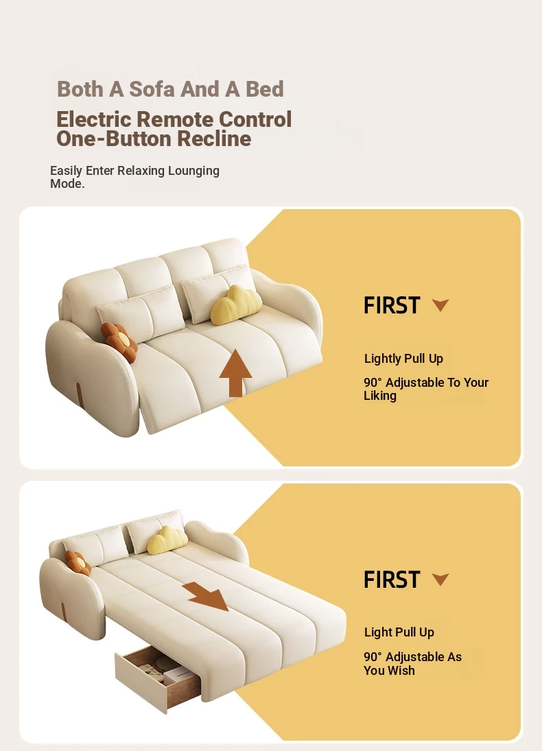 Smart Remote Control Electric Sofa Bed - Versatile Foldable Cat Paw Leather Design for Small Apartments, Perfect for Living Rooms and Bedrooms.