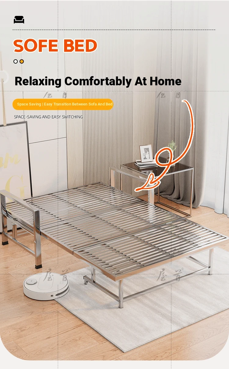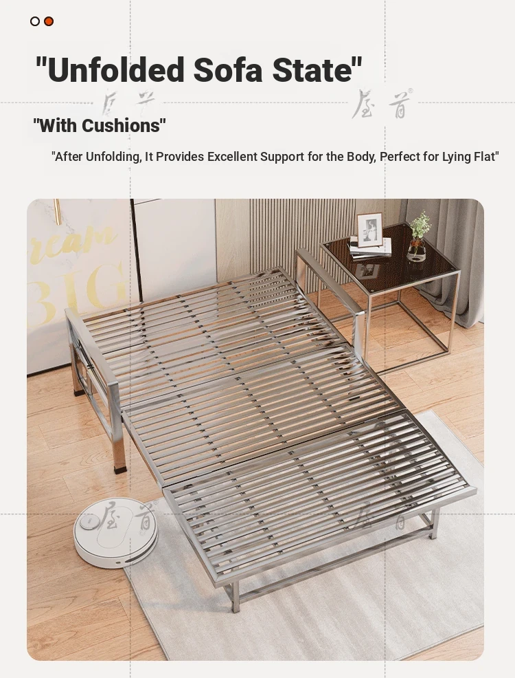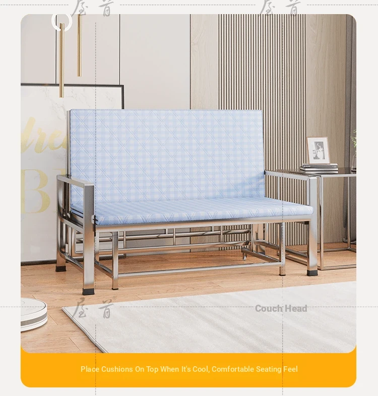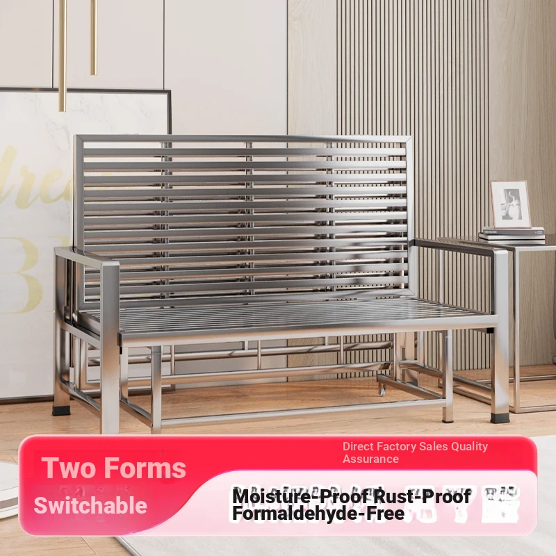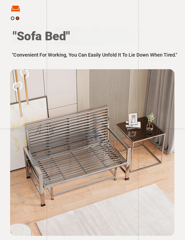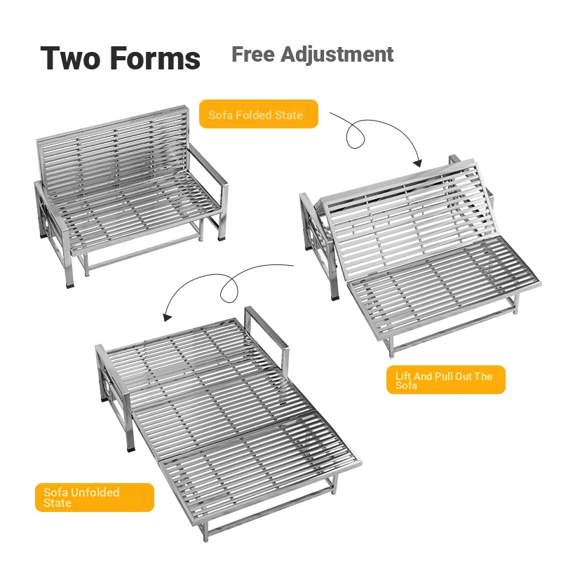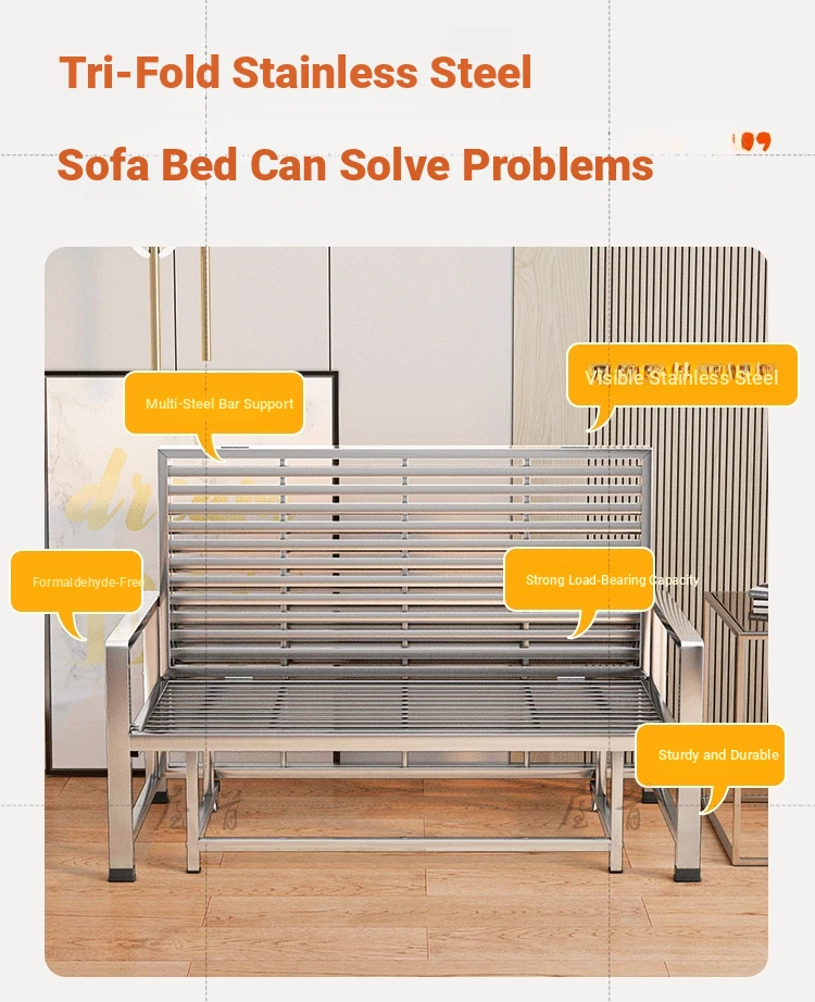 Stainless Steel Folding Sofa Bed - Versatile Space-Saving Design for Small Apartments, Ideal for Single or Double Use in Living Rooms - Modern Minimalist Foldable Bed