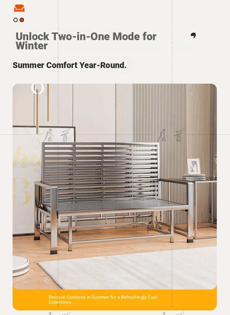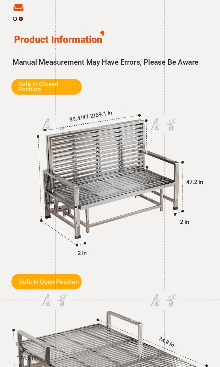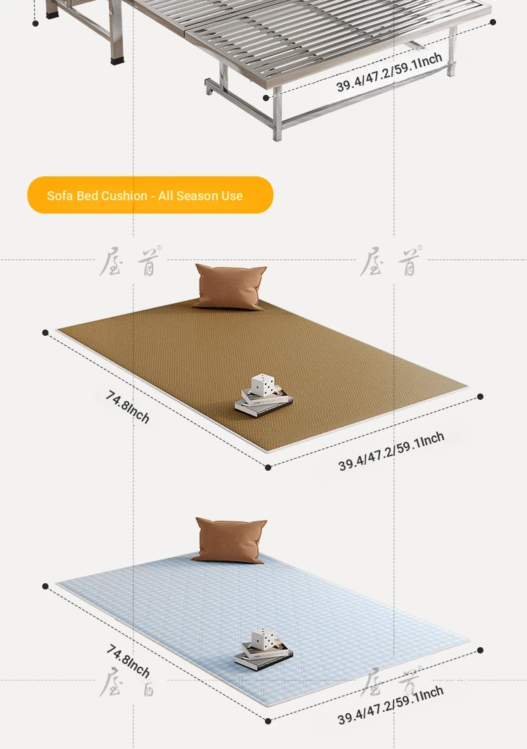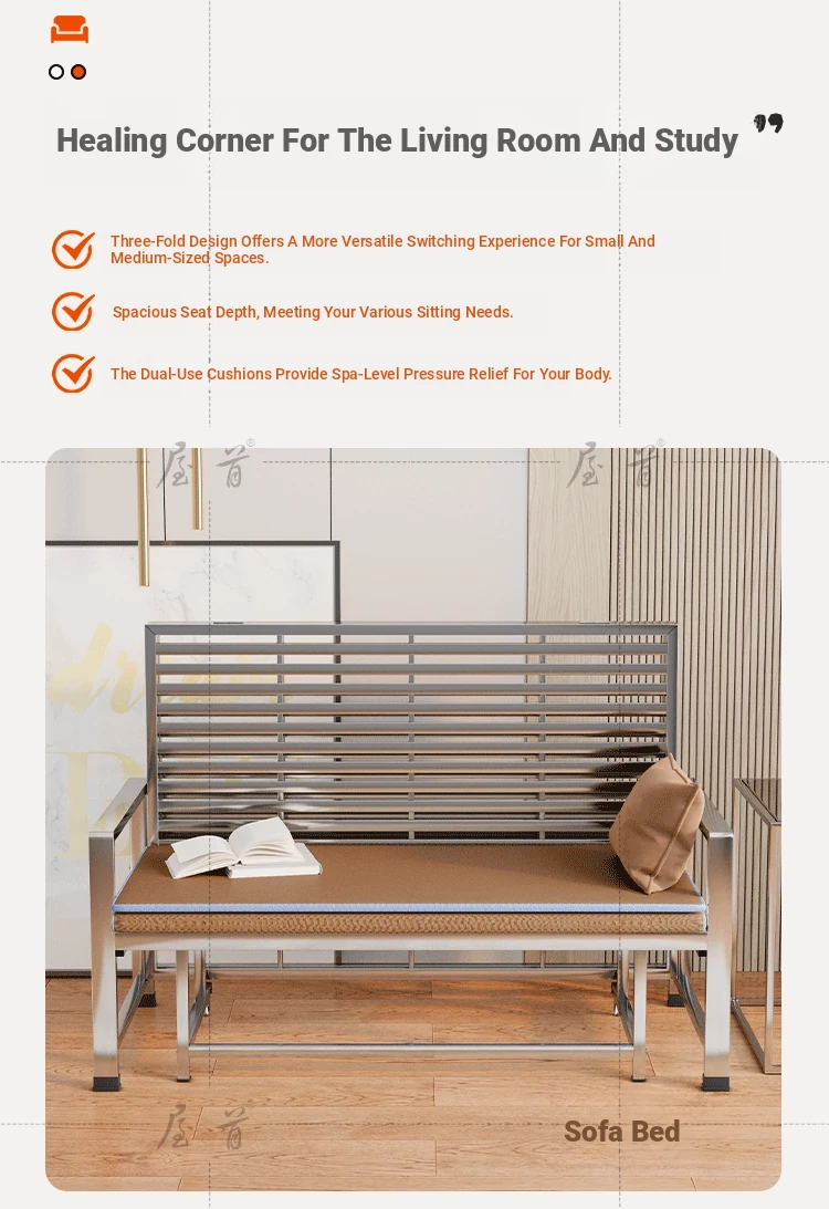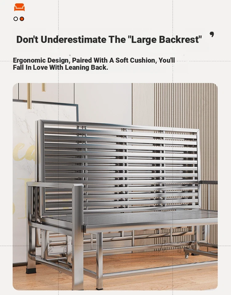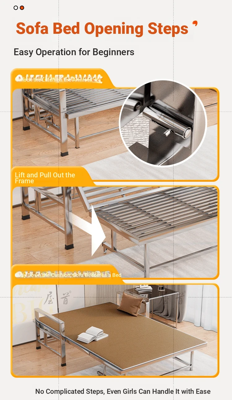 Stainless Steel Folding Sofa Bed - Versatile Space-Saving Design for Small Apartments, Ideal for Single or Double Use in Living Rooms - Modern Minimalist Foldable Bed