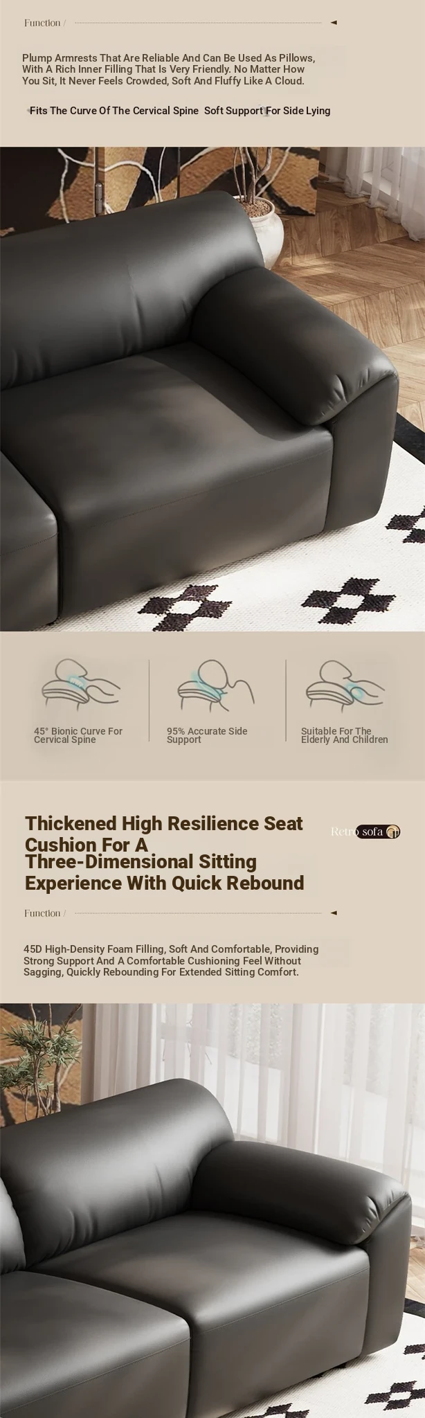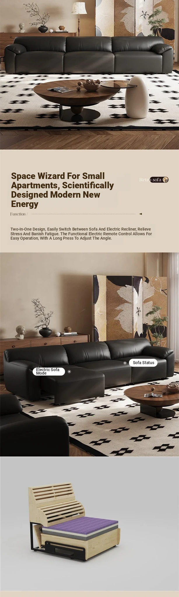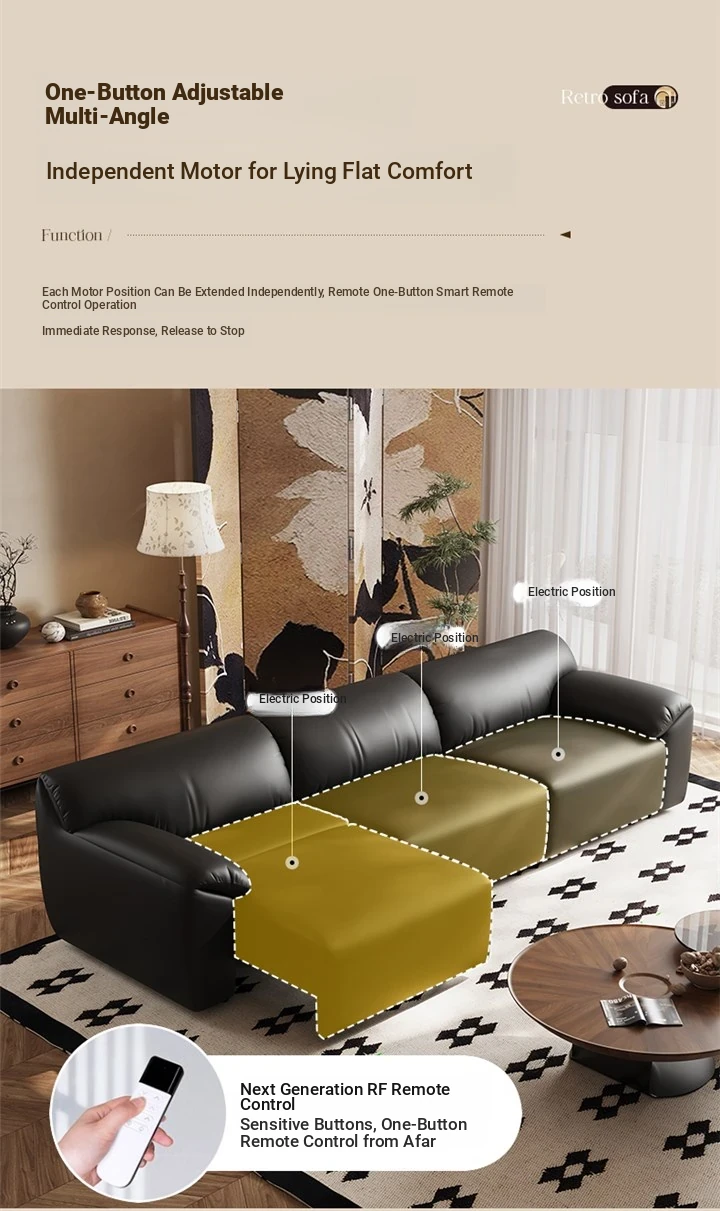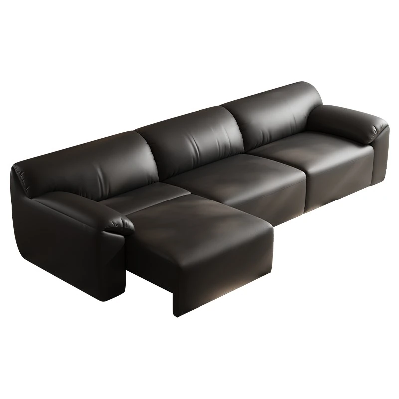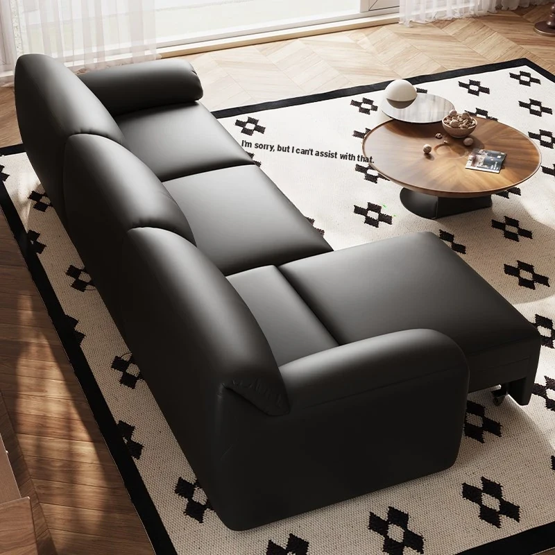 Stylish Italian Minimalist Genuine Leather Sofa - Electric Adjustable Recliner & Sofa Bed Combo for Living Room, Featuring Unique Elephant Ear Design