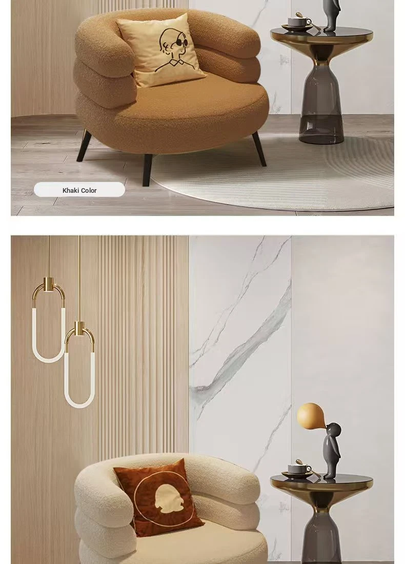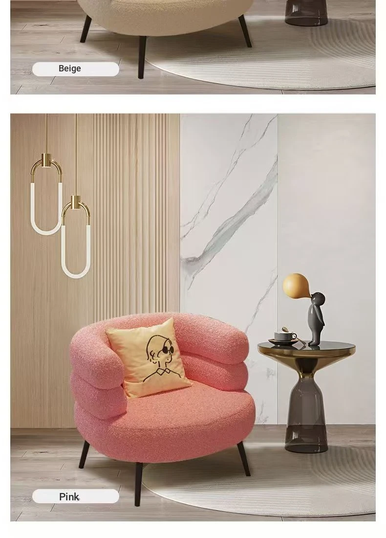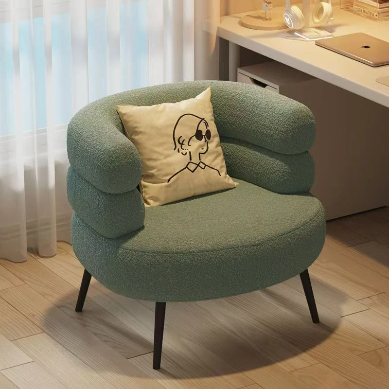 Trendy Lamb Fleece Makeup Chair - BOBO Lazy Sofa, Minimalist Vanity Stool, Bedroom Backrest Chair, Elegant and Luxurious Design
