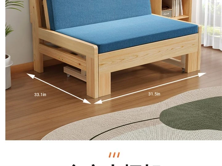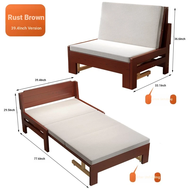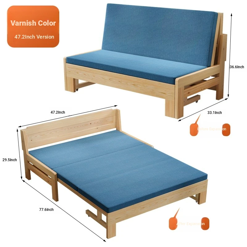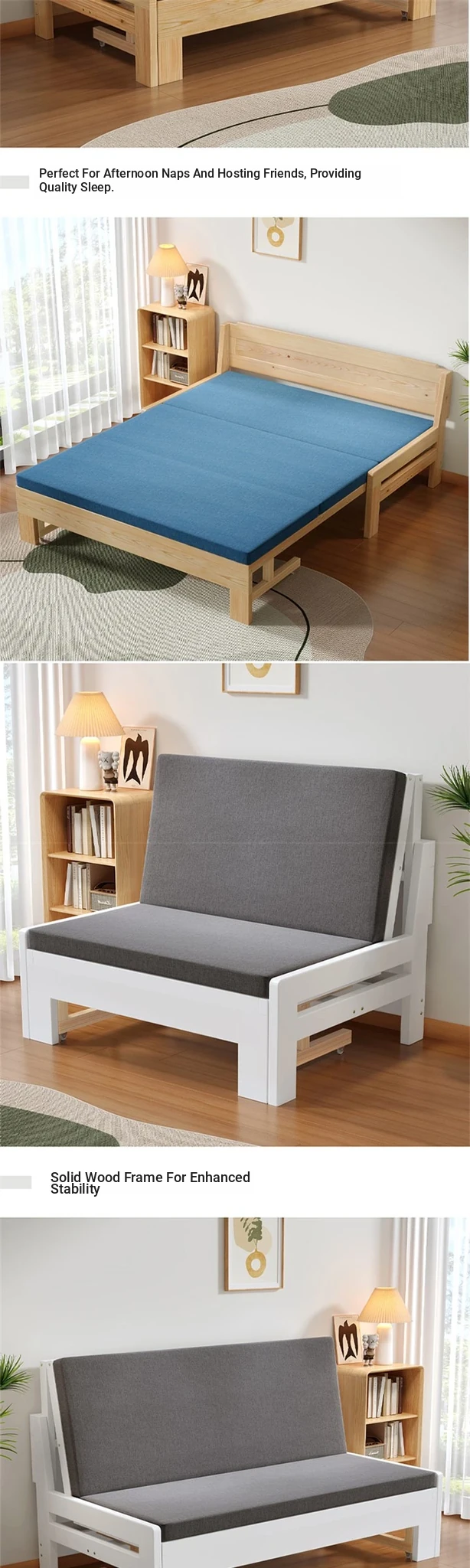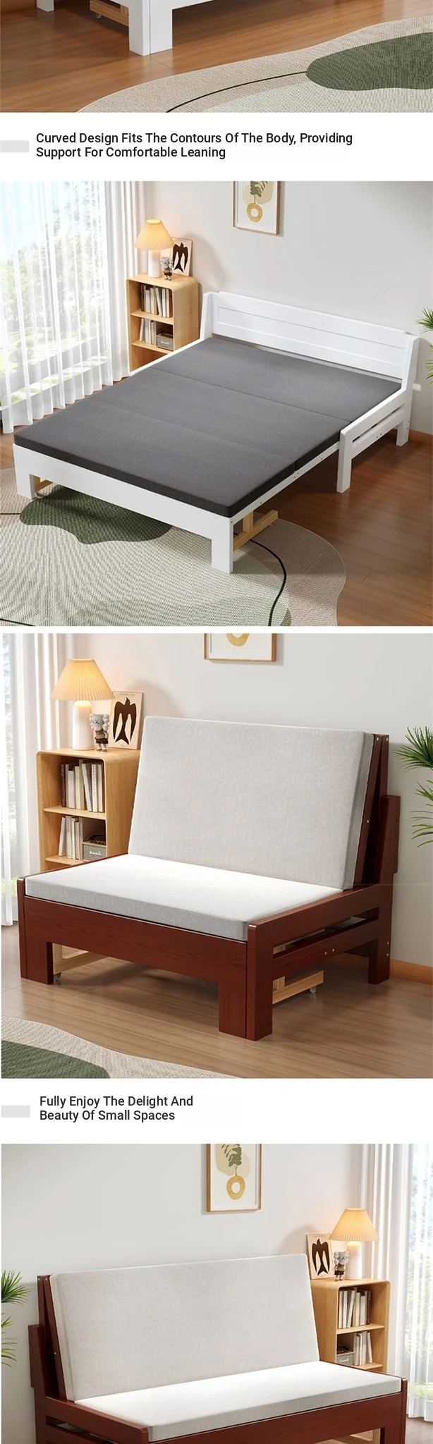 Versatile Solid Wood Sofa Bed - Foldable 2-in-1 Design for Living Room, Study, or Balcony - Perfect for Small Spaces (1.2m, S-Shaped; 1.5m, Double; 1.8m)