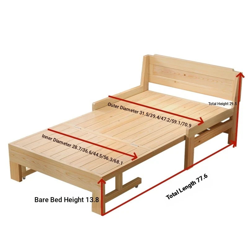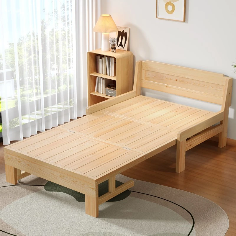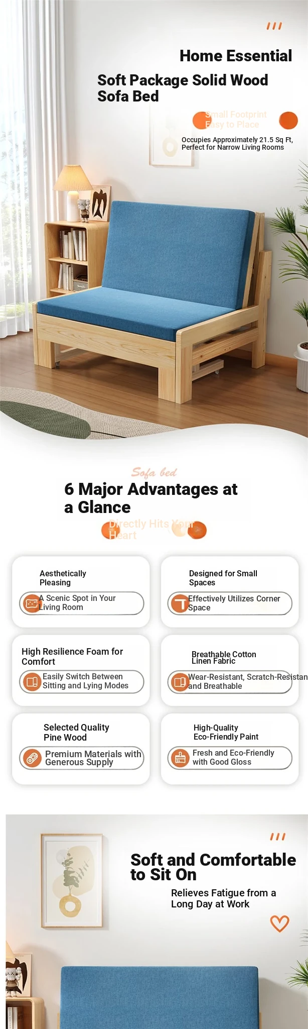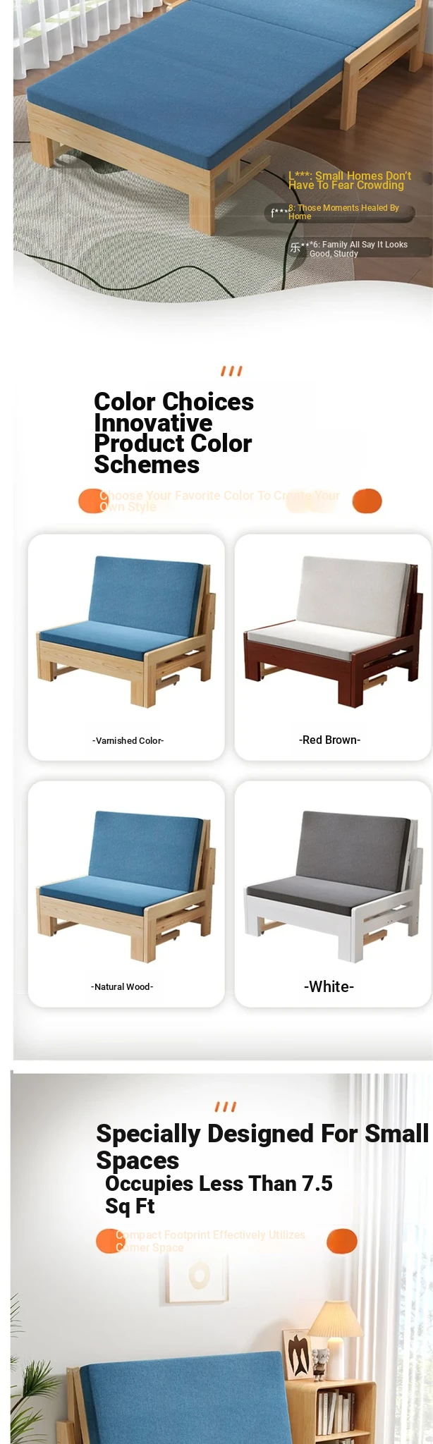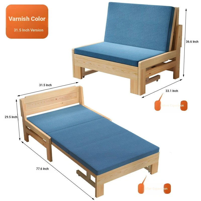 Versatile Solid Wood Sofa Bed - Foldable 2-in-1 Design for Living Room, Study, or Balcony - Perfect for Small Spaces (1.2m, S-Shaped; 1.5m, Double; 1.8m)
