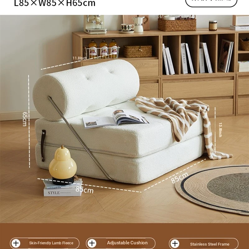 Vintage Cream Fabric Folding Sofa Bed - Compact One-Person Sofa for Small Spaces, Versatile Tajik Style Sofa Bed