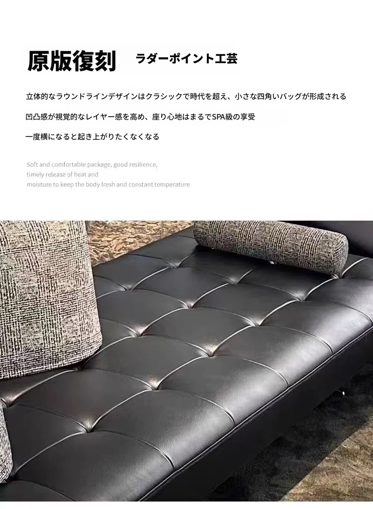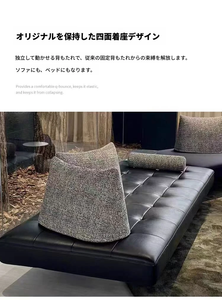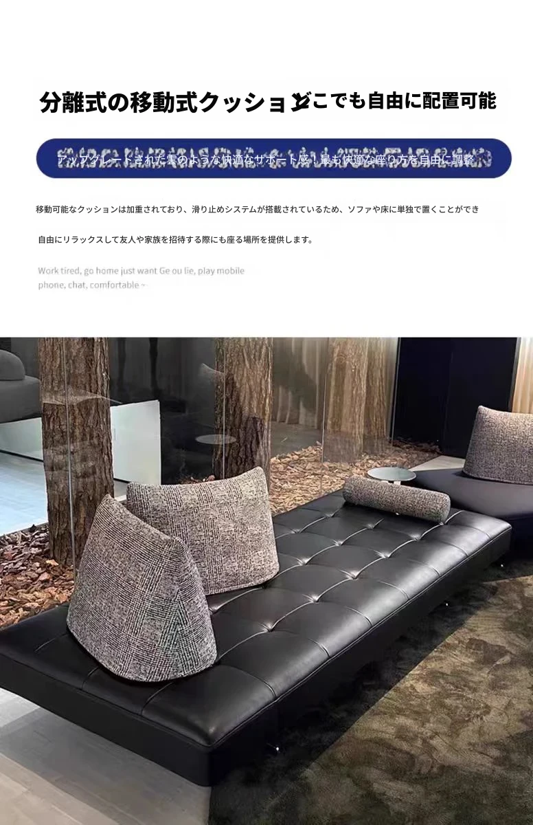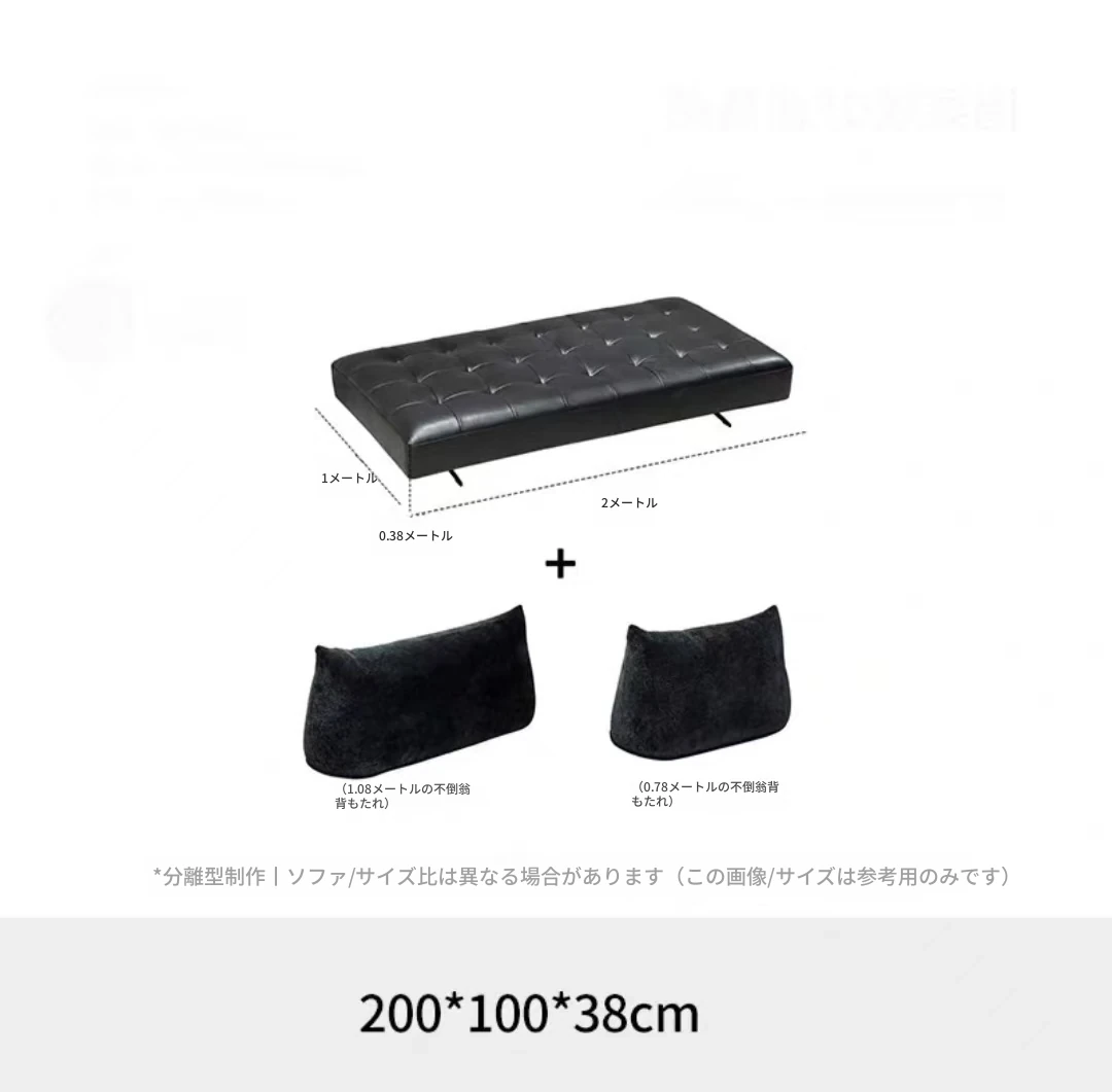 2025年新作!イタリアンミニマリズム真皮ソファ - 小型リビングに最適!アームレスデザイン、両面利用可能なブラックカウホーンソファで、スタイリッシュな空間を演出します。快適さと洗練を兼ね備えた一品!