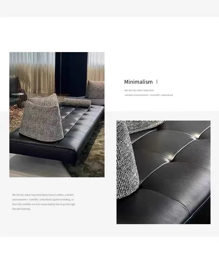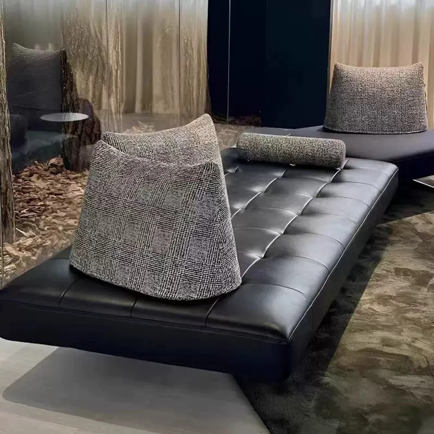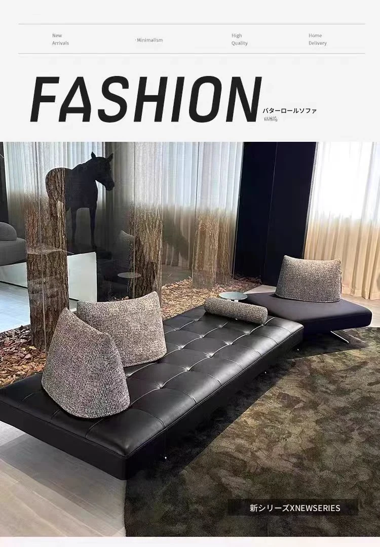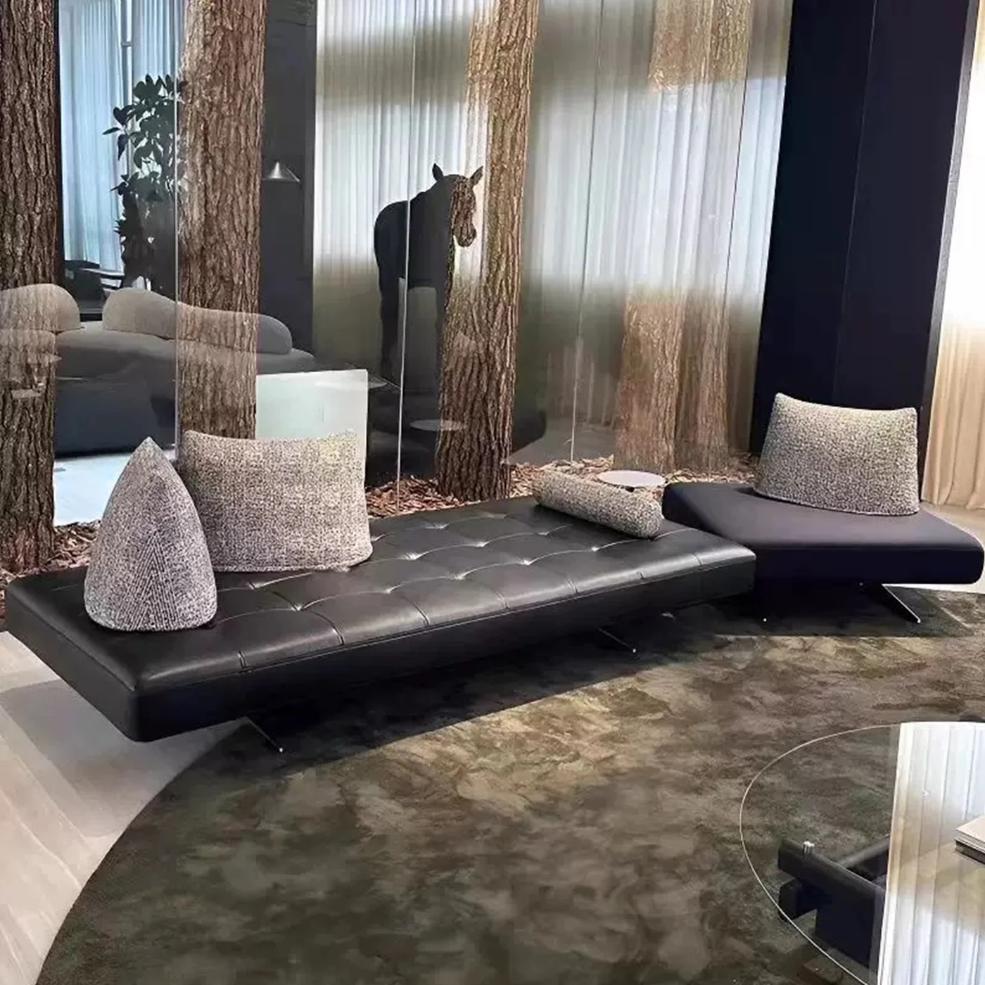 2025年新作!イタリアンミニマリズム真皮ソファ - 小型リビングに最適!アームレスデザイン、両面利用可能なブラックカウホーンソファで、スタイリッシュな空間を演出します。快適さと洗練を兼ね備えた一品!