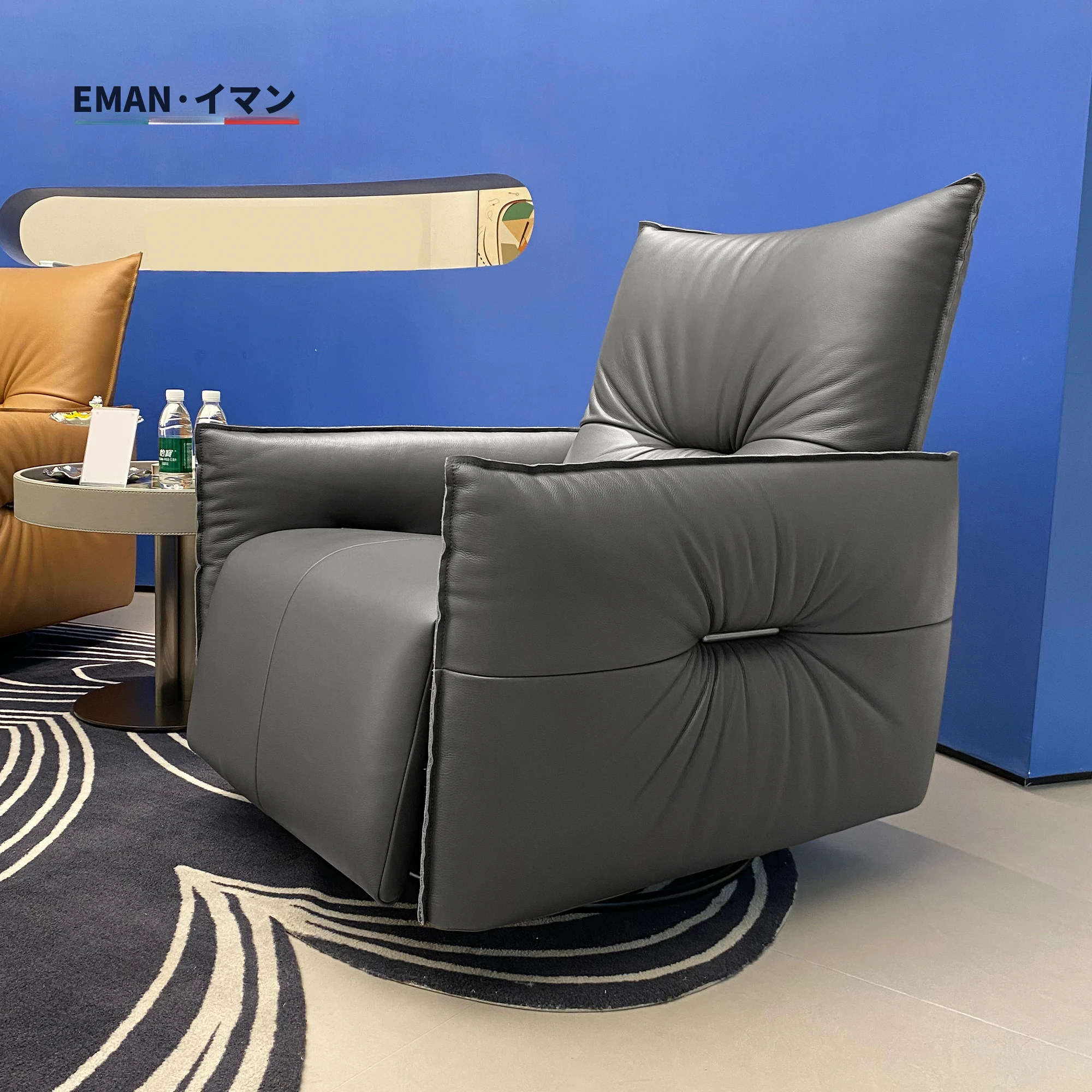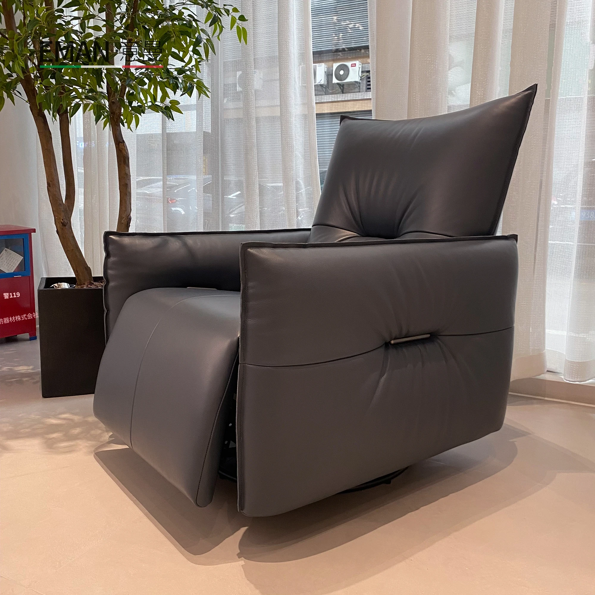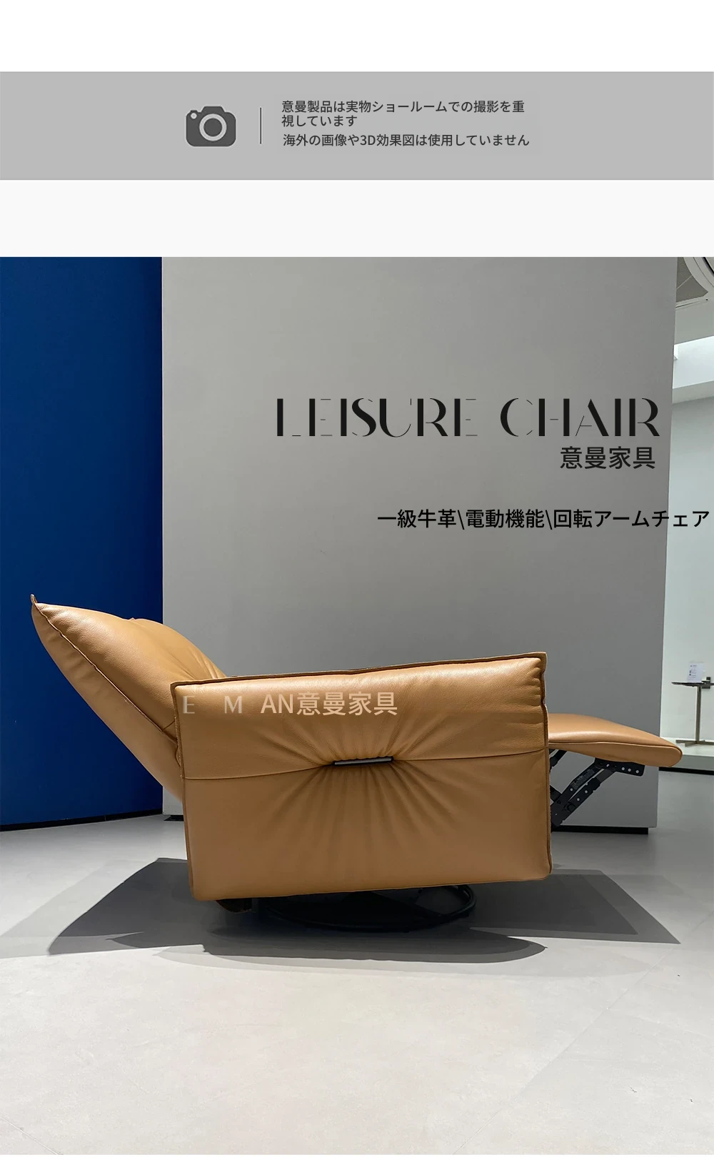 2025年新作!本革製電動リクライニングチェア - モダンなリビングにぴったりな回転式レジャーチェア。高級牛革を使用した一人掛けソファで、快適さとスタイルを兼ね備えています!