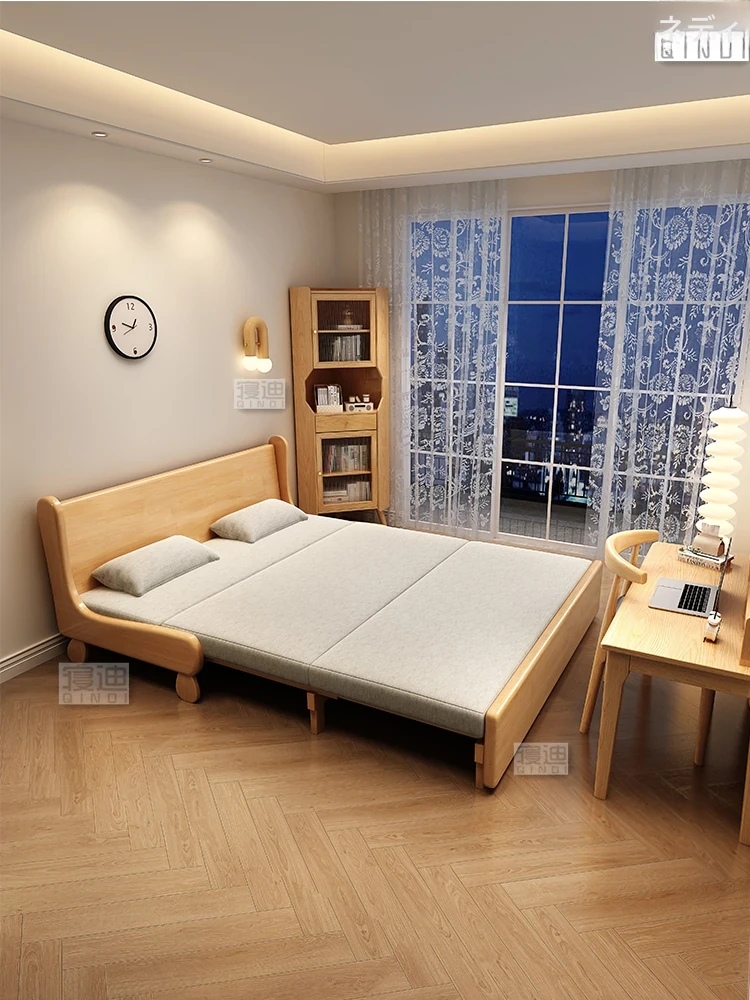 2025年新款!折叠式实木沙发床,多功能设计,完美适用于小户型、民宿及书房。舒适与实用兼具,让您轻松享受双人空间的温馨与便利!