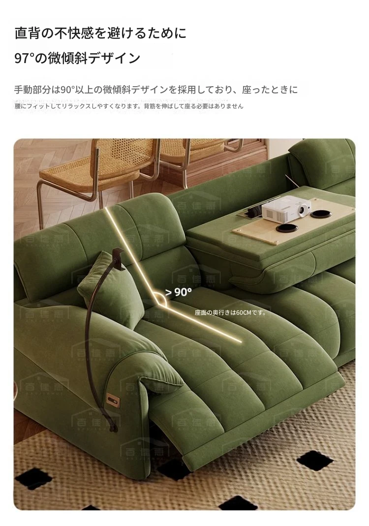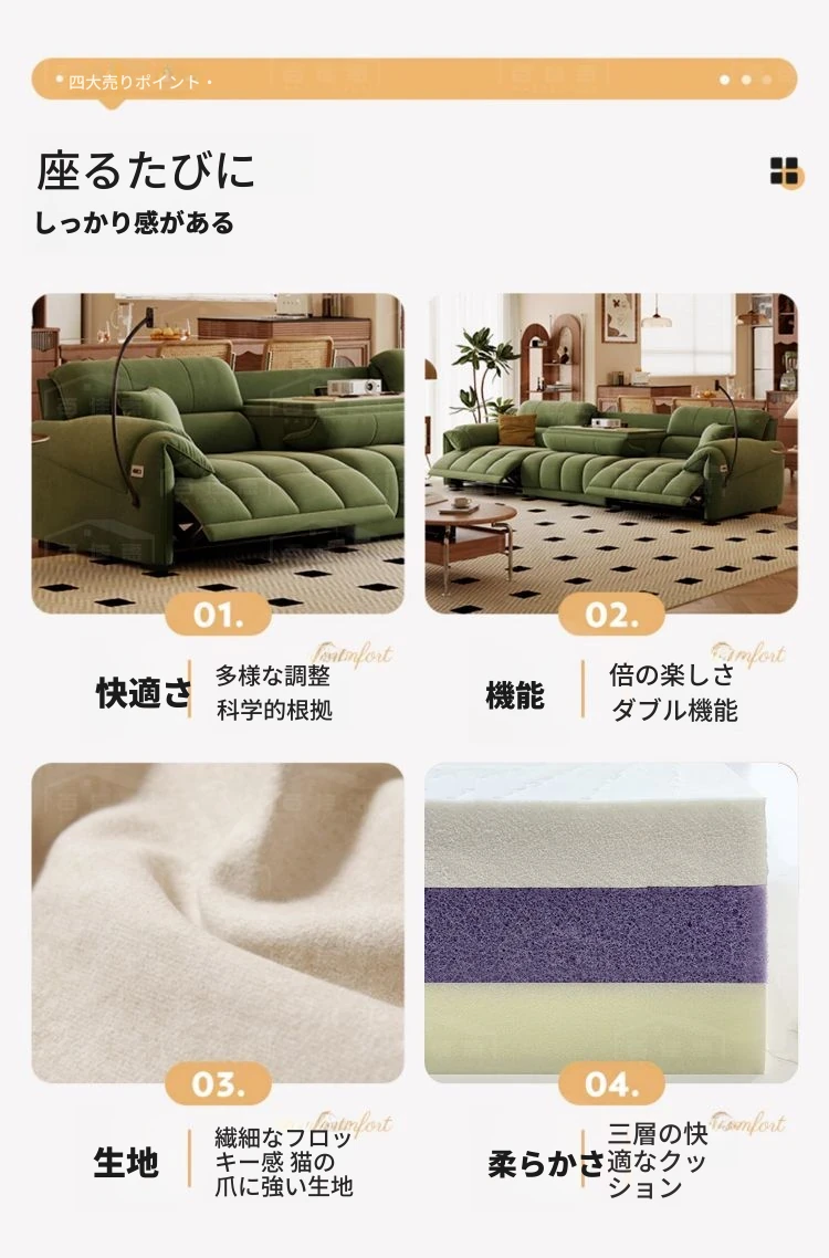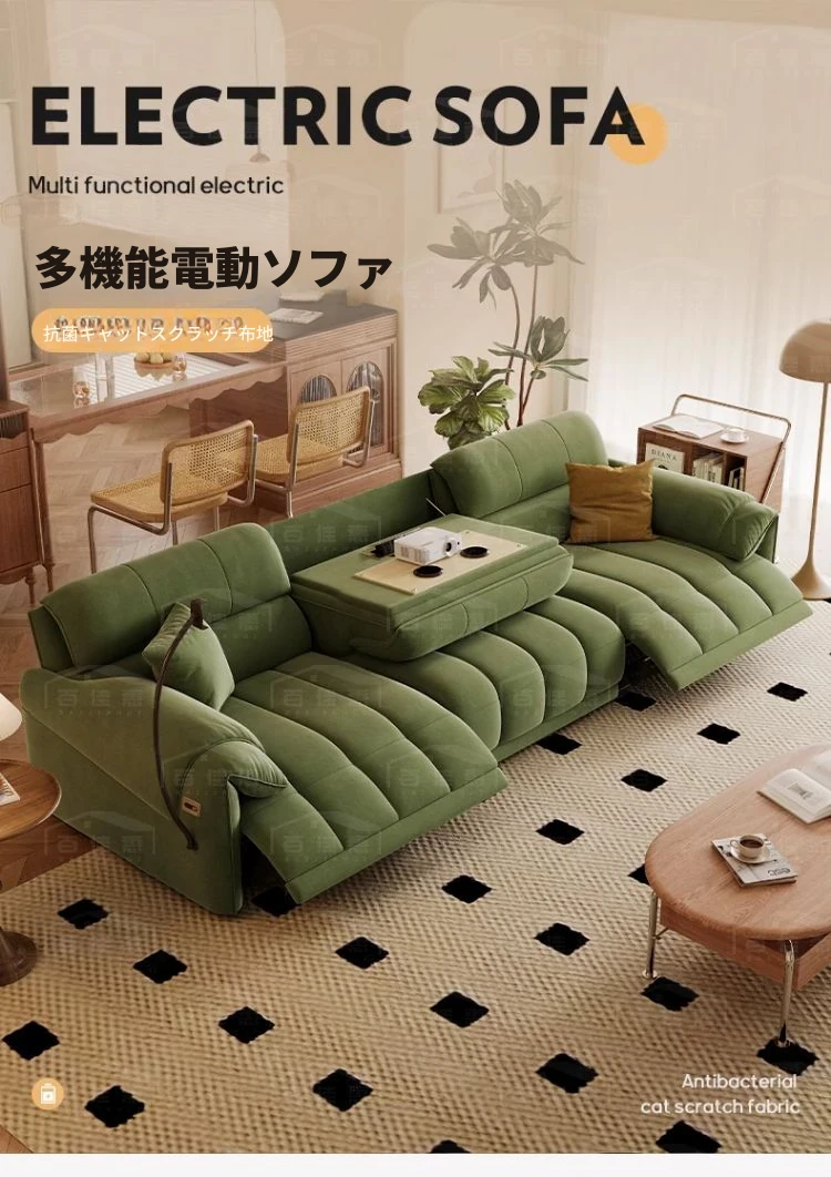 百佳惠エグゼクティブ電動機能ソファ - リビングに最適なキャットグラブ対応、シンプルでモダンなクリーム風デザインの布製ソファ!快適さとスタイルを両立させた理想の家具です。