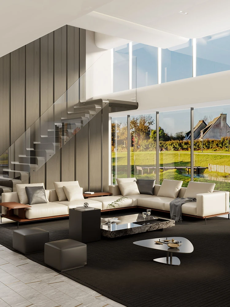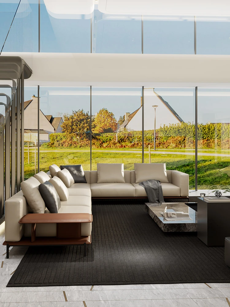 ブレラソファ イタリアン本革 コーナーアーチ型 ヴィラ用 大平面リビングに最適な高級牛革ソファ - 贅沢な快適性とスタイリッシュなデザインで、あなたのリビングを特別な空間に演出します!