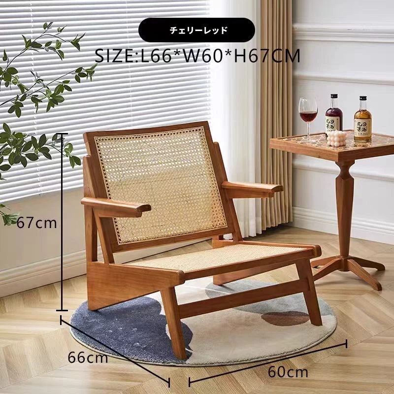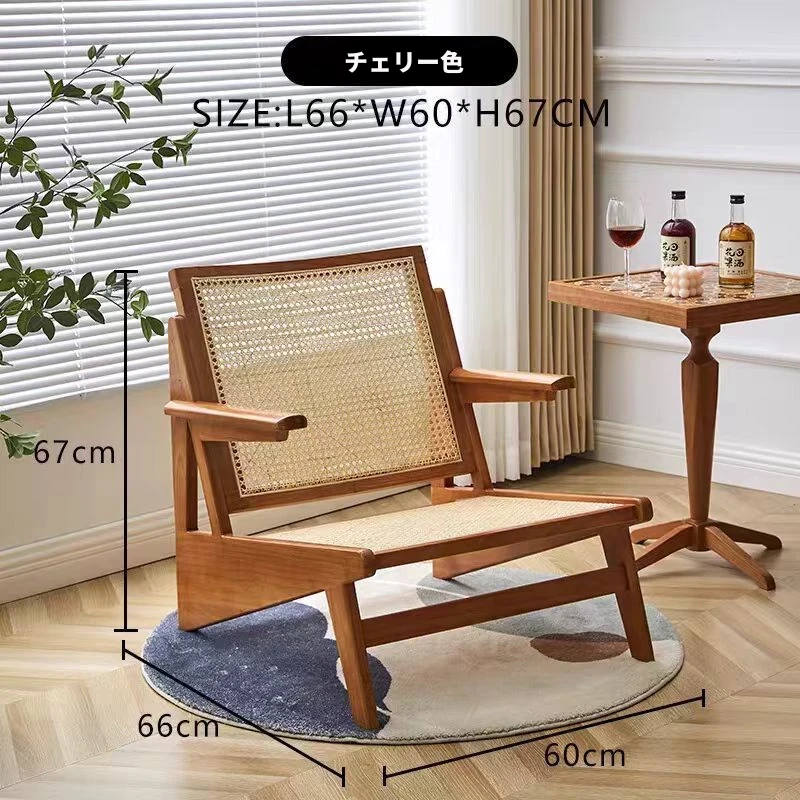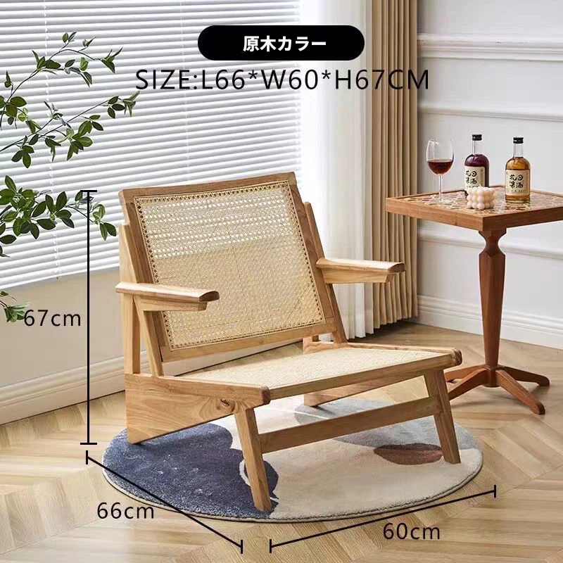 リラックスできるラタン編みのカンガルーチェア|家庭用・ホテル用・民宿に最適|バルコニーや中古実木製|シンプルでスタイリッシュなデザイン|肘掛け付きの和風スタイルで心地よいひとときをお楽しみください!