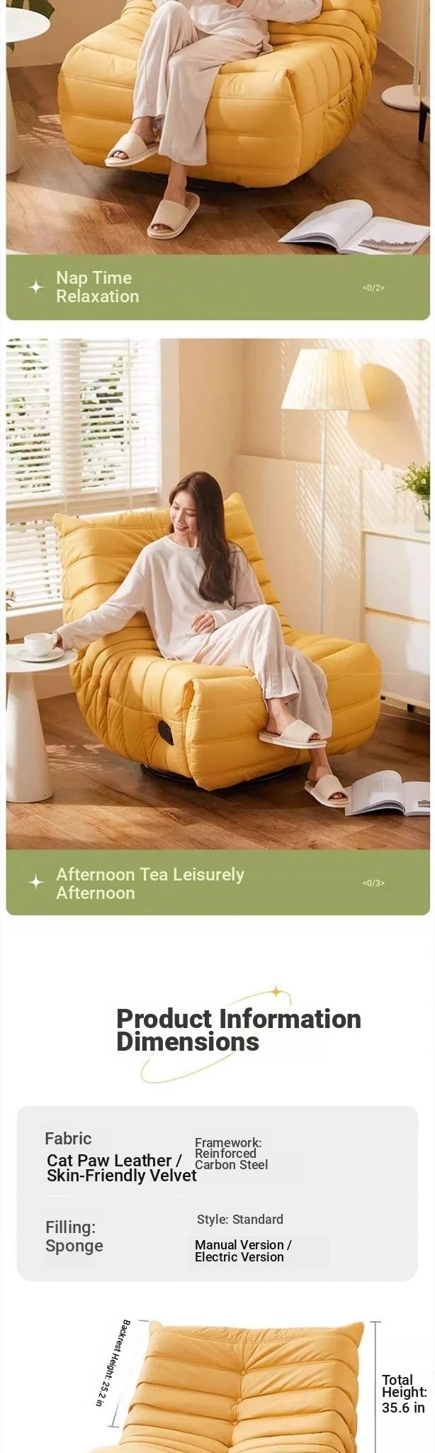 Caterpillar Lazy Sofa Chair - Electric Recliner for Living Room & Balcony, Rotating Single Lounge Chair for Ultimate Relaxation and Comfort