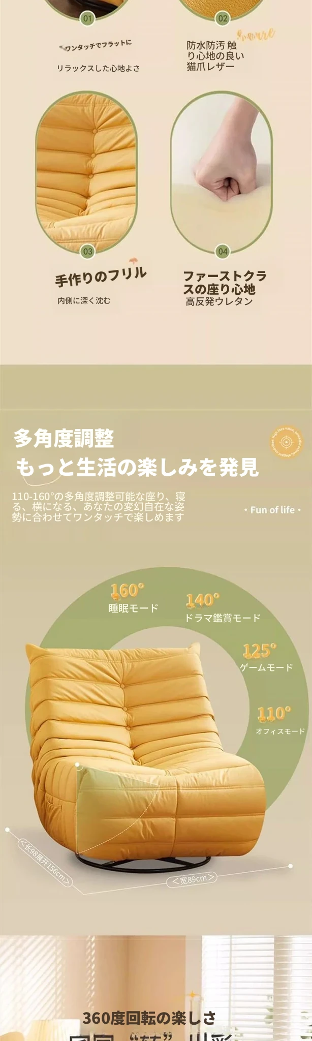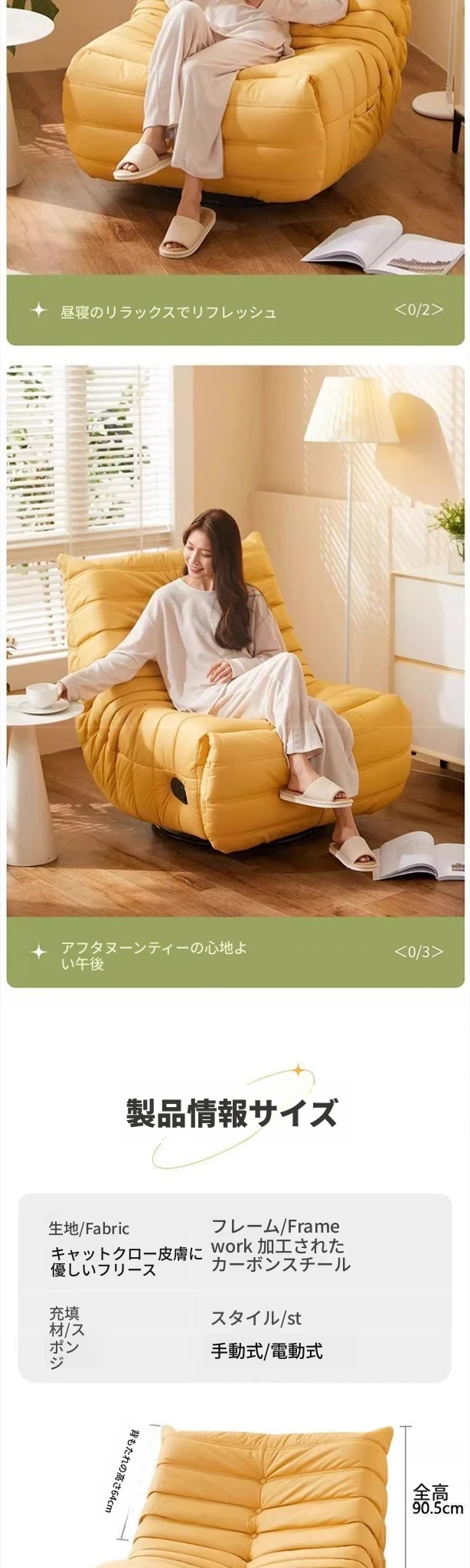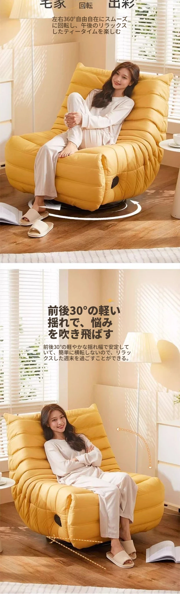 ふわふわ毛虫リクライニング電動ソファ椅子 - リビングやバルコニーに最適な、くつろぎのひとときを提供する回転式シングルソファ。あなたのリラックスタイムをより快適に!