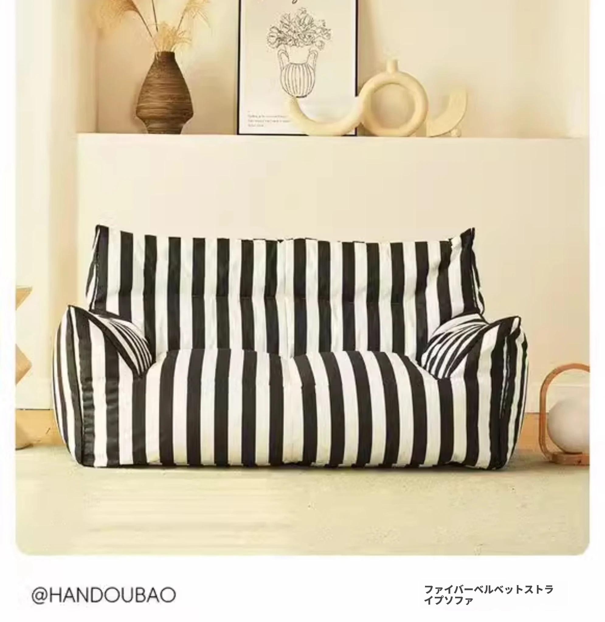 【ラムフリース】ブラックホワイトストライプ