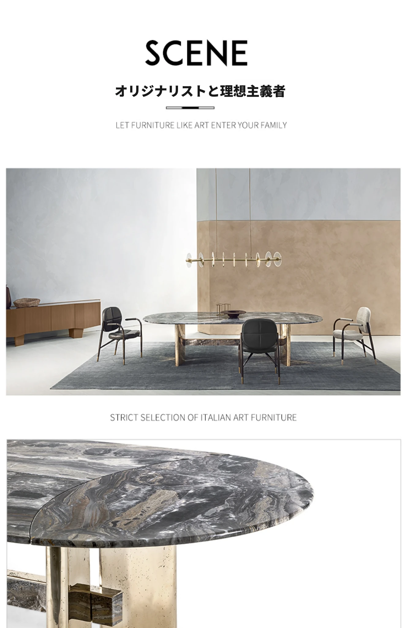 コルネリオ・カップリン イタリアンラグジュアリー 天然大理石ダイニングテーブル デザイナーによる高級ヴィラモデルルーム用家具で、洗練されたエレガンスを演出します。