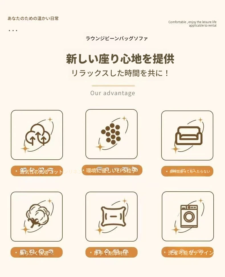 リラックスソファ・タタミスタイル!寝転びもできる、寝室やリビングにぴったりなカジュアルチェア。省スペースでコンパクトなデザイン、小さなお部屋に最適なビーズソファ!あなたのくつろぎ時間をもっと特別に。