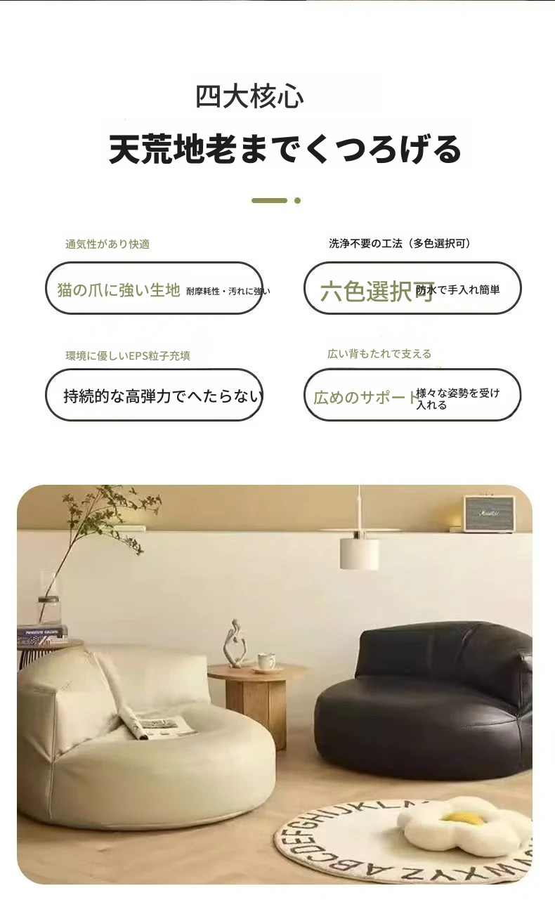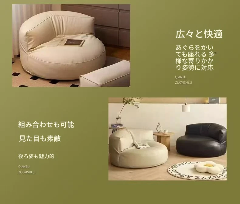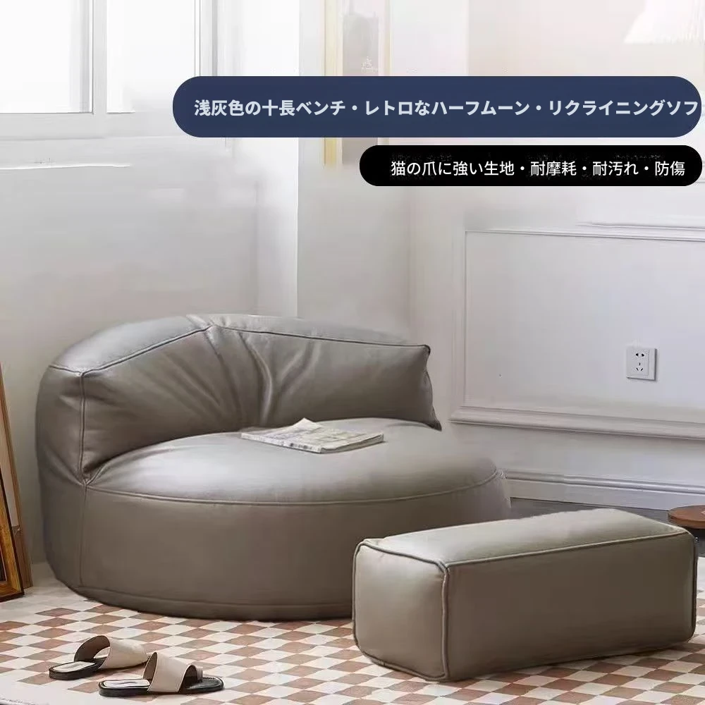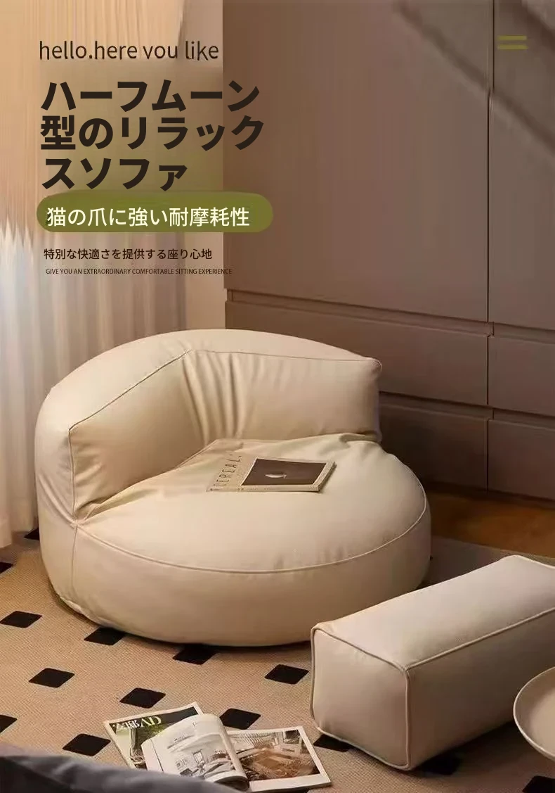 楽ちんソファ 半月型ビーズクッション バルコニー・リビング・寝室に最適!畳にも合う小型サイズ、リラックスできる一人掛け。寝転びもOK!あなたのくつろぎ空間を演出します。