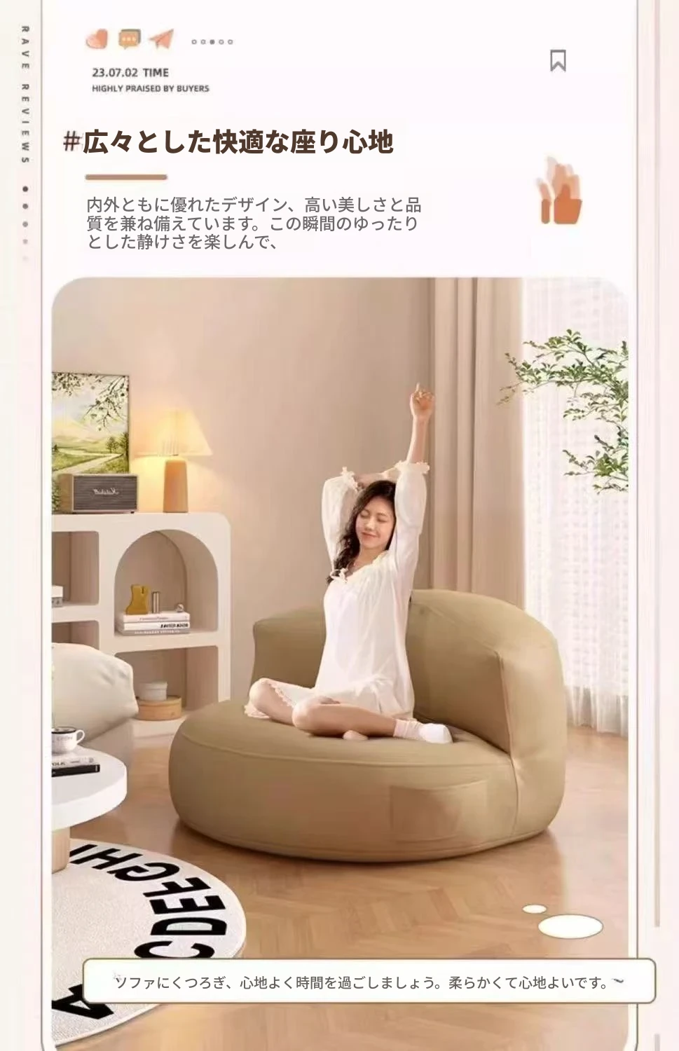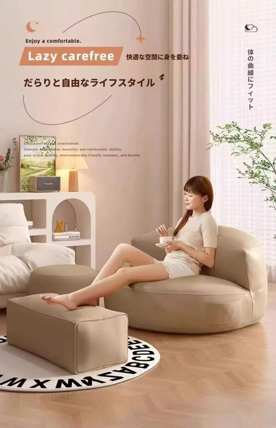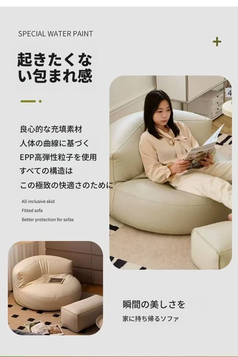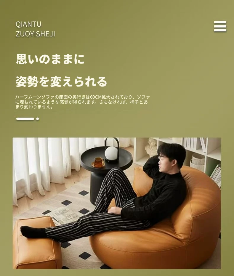 楽ちんソファ 半月型ビーズクッション バルコニー・リビング・寝室に最適!畳にも合う小型サイズ、リラックスできる一人掛け。寝転びもOK!あなたのくつろぎ空間を演出します。