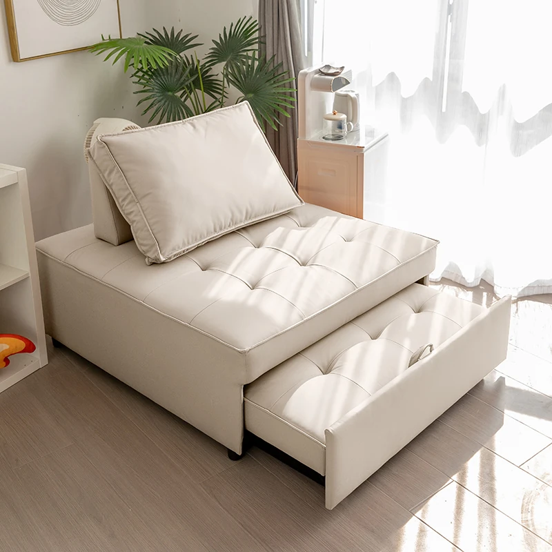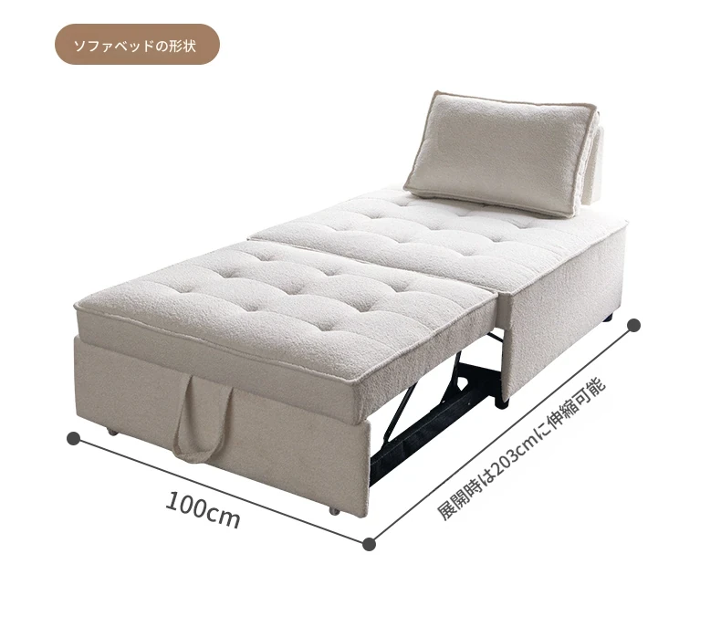 クリーム色のファブリックソファベッド折りたたみ式、マルチ機能型!中小型リビングに最適な二人掛けソファ、スタイリッシュでコンパクトなデザイン。スペースを有効活用し、快適な睡眠空間を提供します!