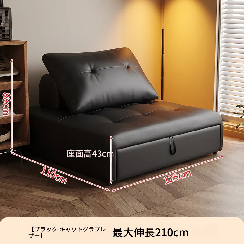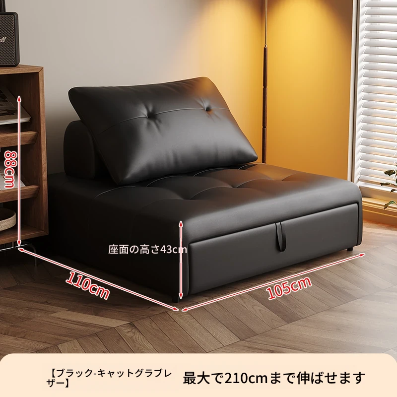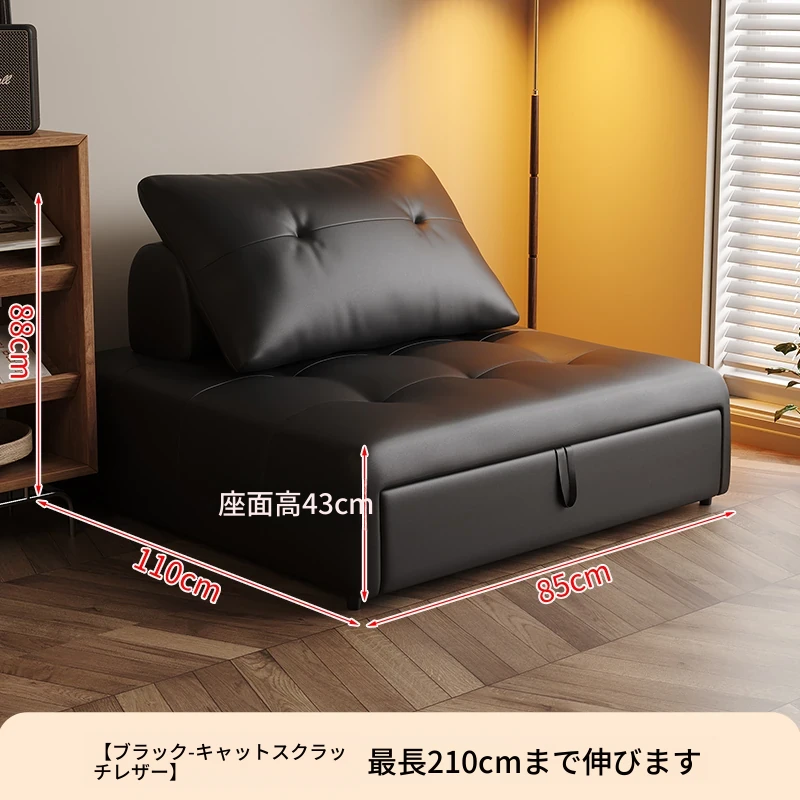 黒色1.05メートルソファベッド(猫の爪皮フラットにして2メートル)