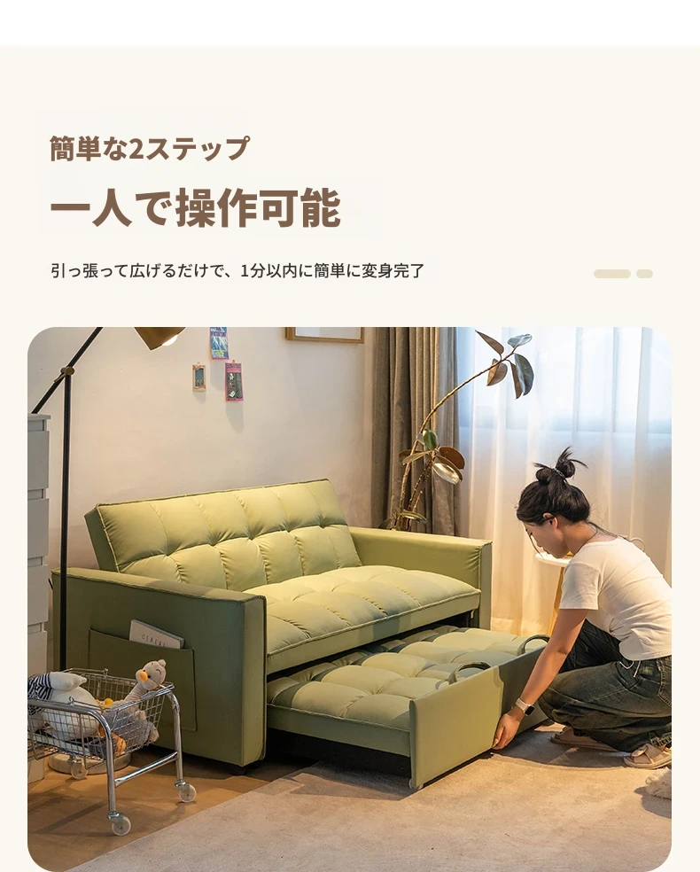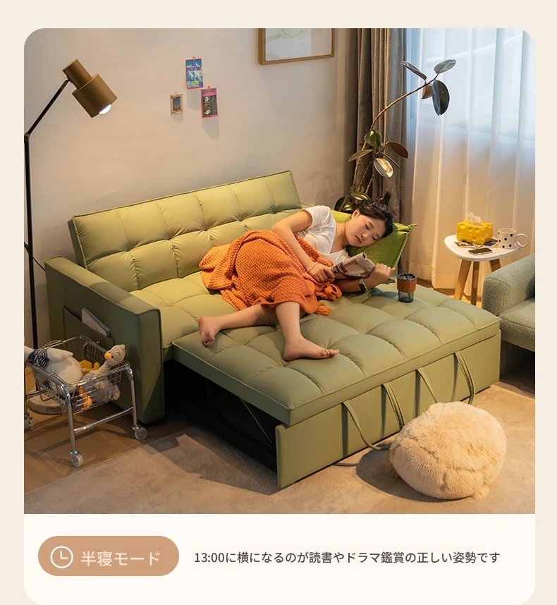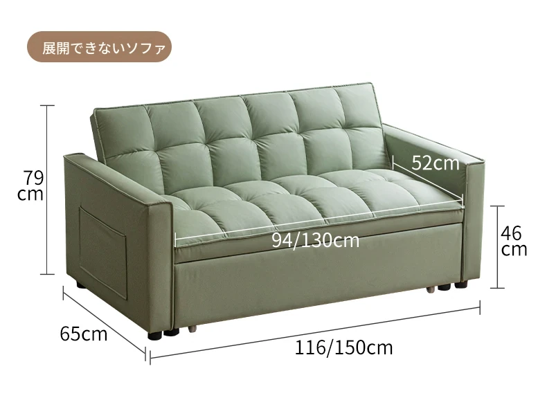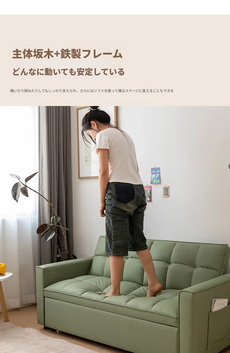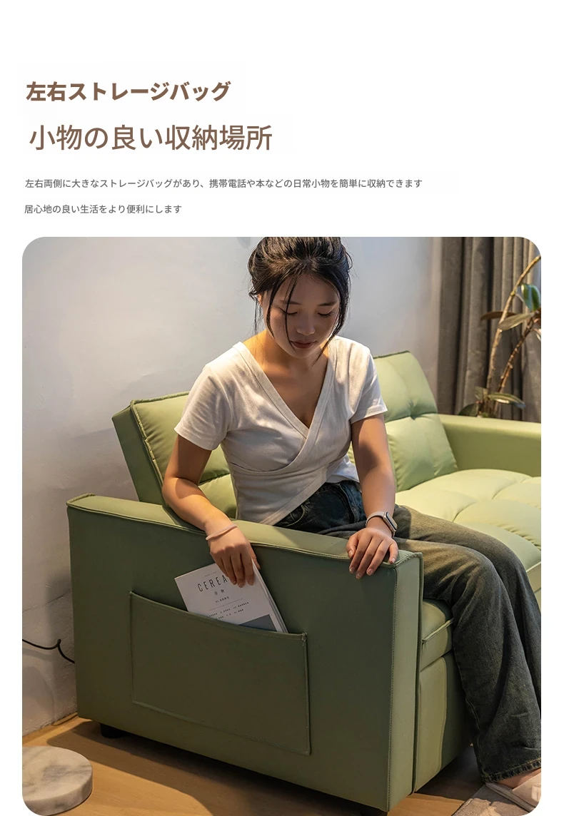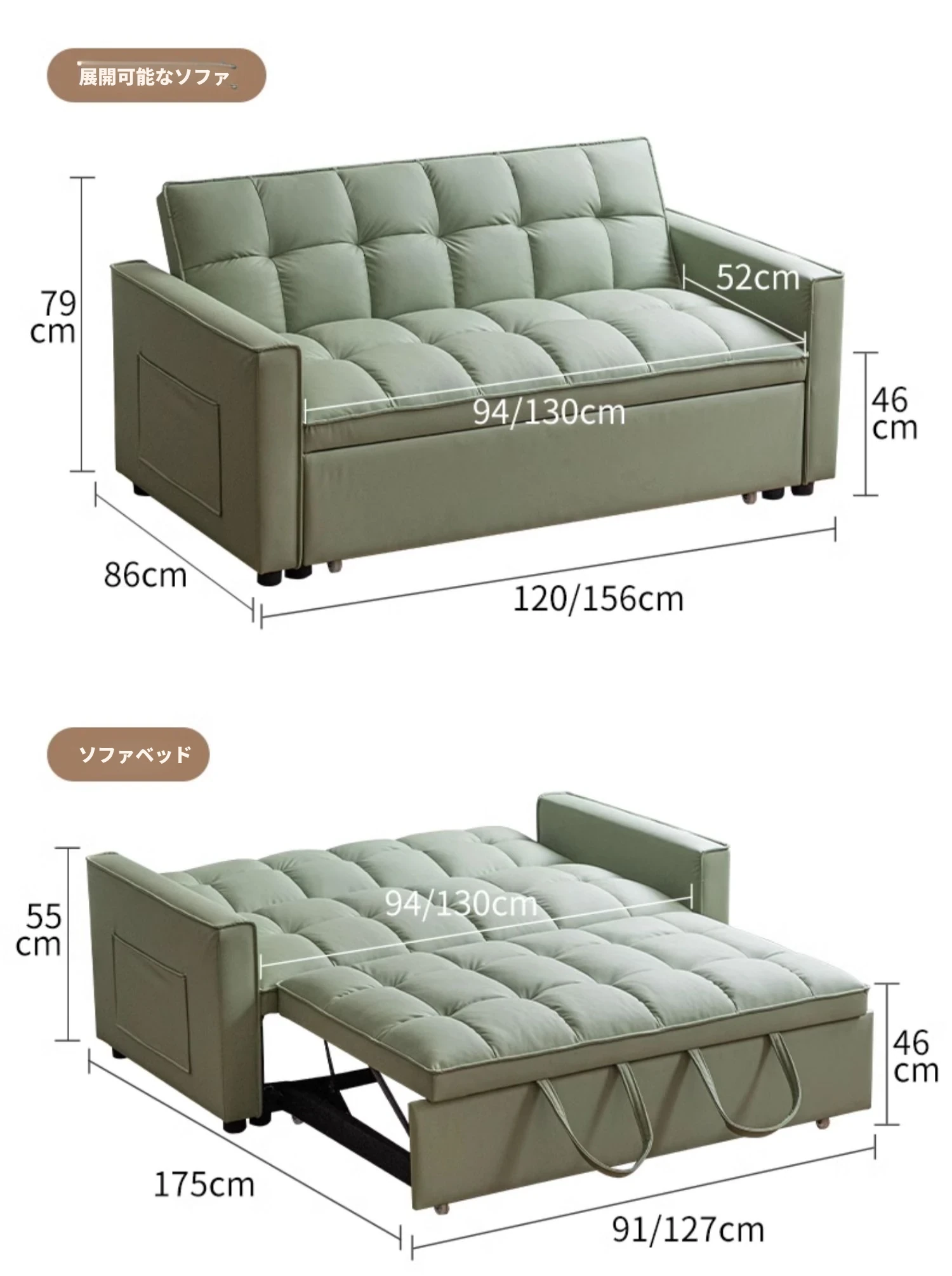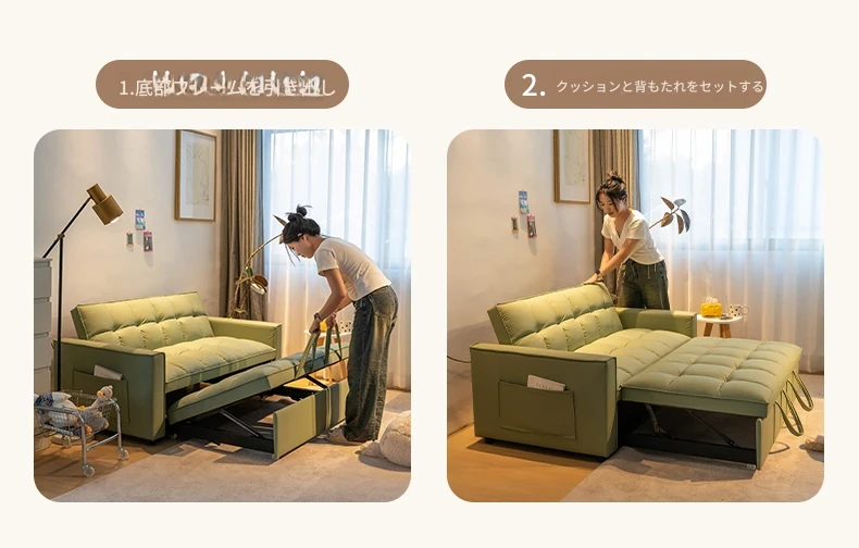 2385豆沙緑ソファベッド1.56メートル標準タイプ(2つのクッション付き)